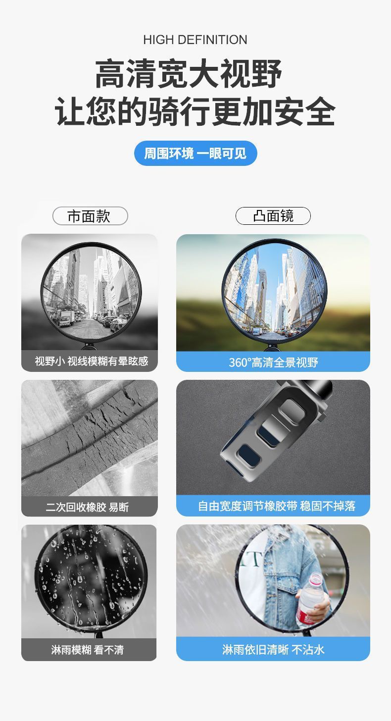 Зеркало заднего вида для велосипеда, широкоугольное выпуклое зеркало, велосипедный отражатель, зеркало заднего вида для горного велосипеда, зеркало заднего вида с силиконовой ручкой