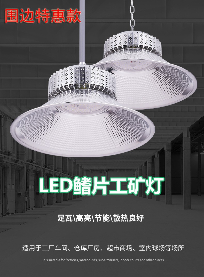 Высокая мощность светодиодный промышленный и горнодобывающая лампа 300W плавник мастерская плавника поле поле складской свет супер яркий промышленный подвесной свет