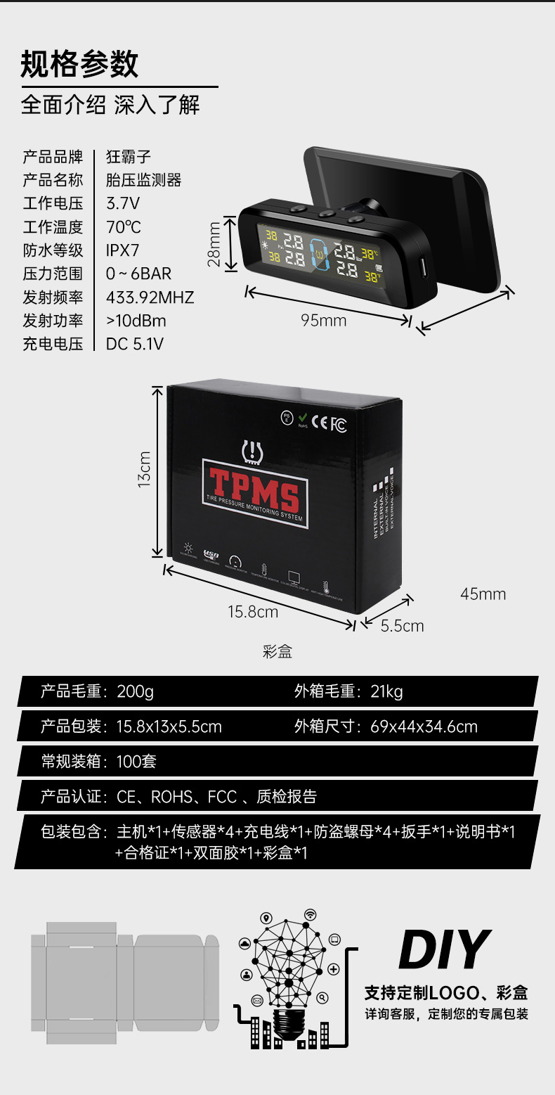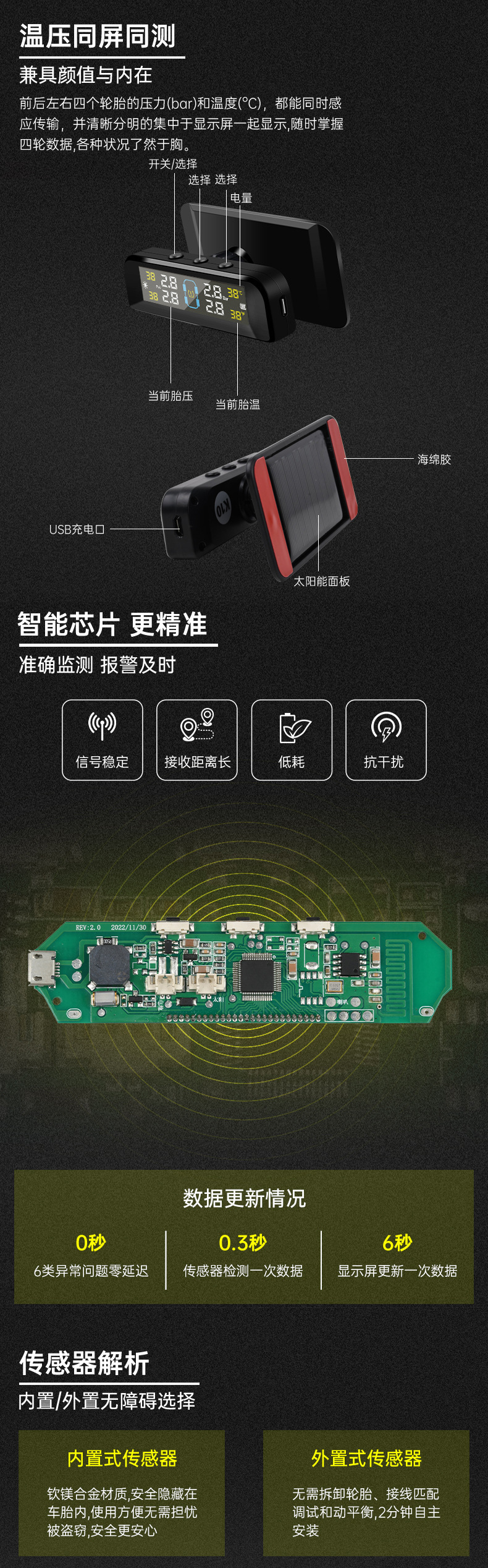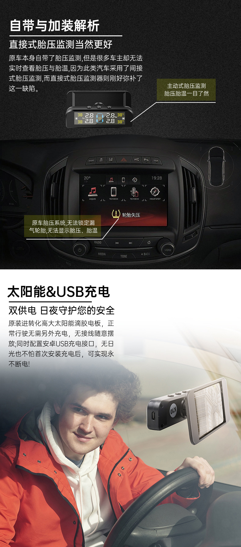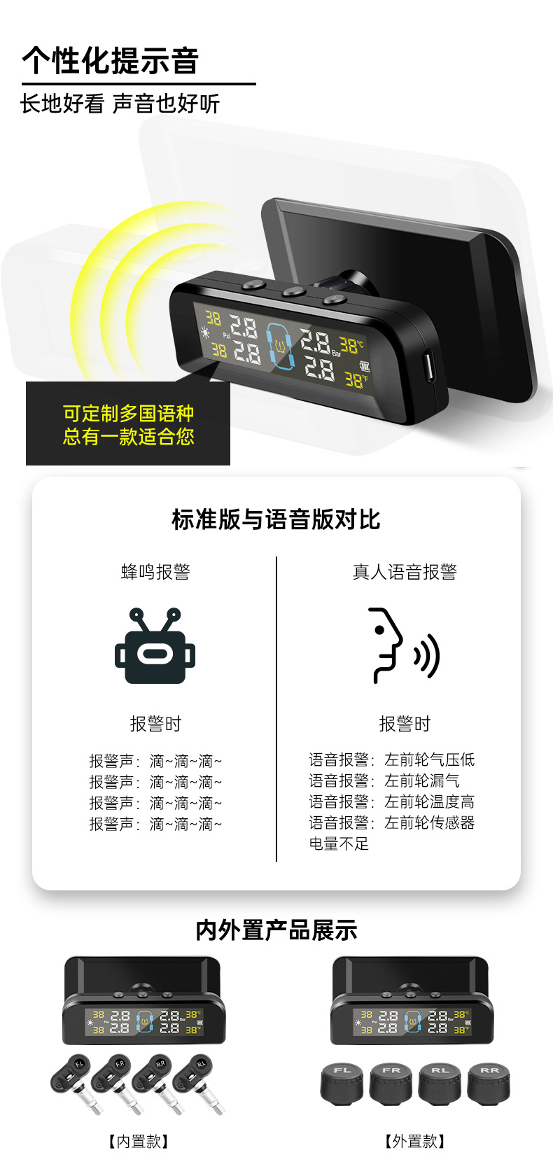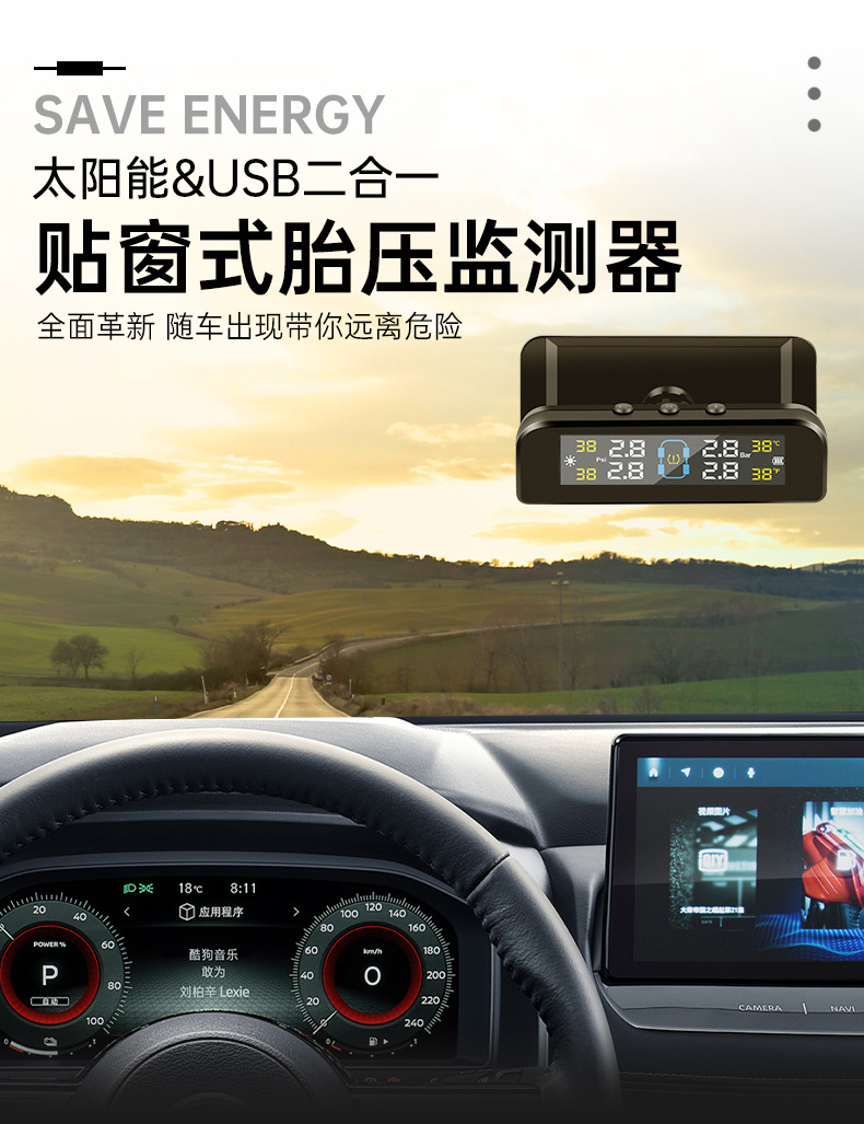 TY05 Солнечный монитор давления в шинах Высокоточный датчик встроенный внешний автомобиль универсальный беспроводной инструмент обнаружения