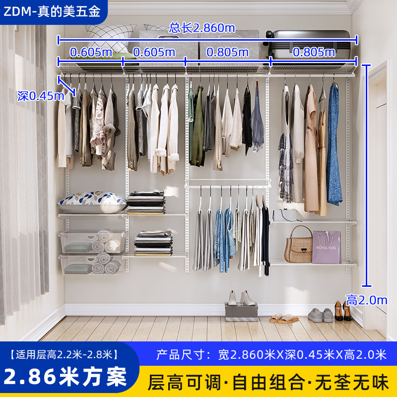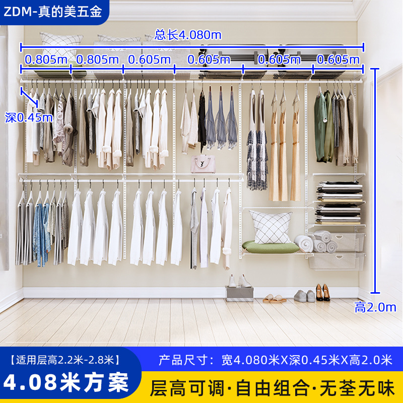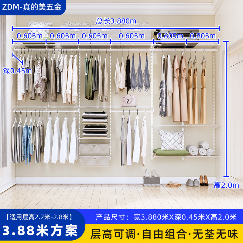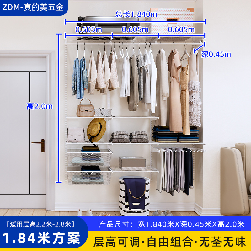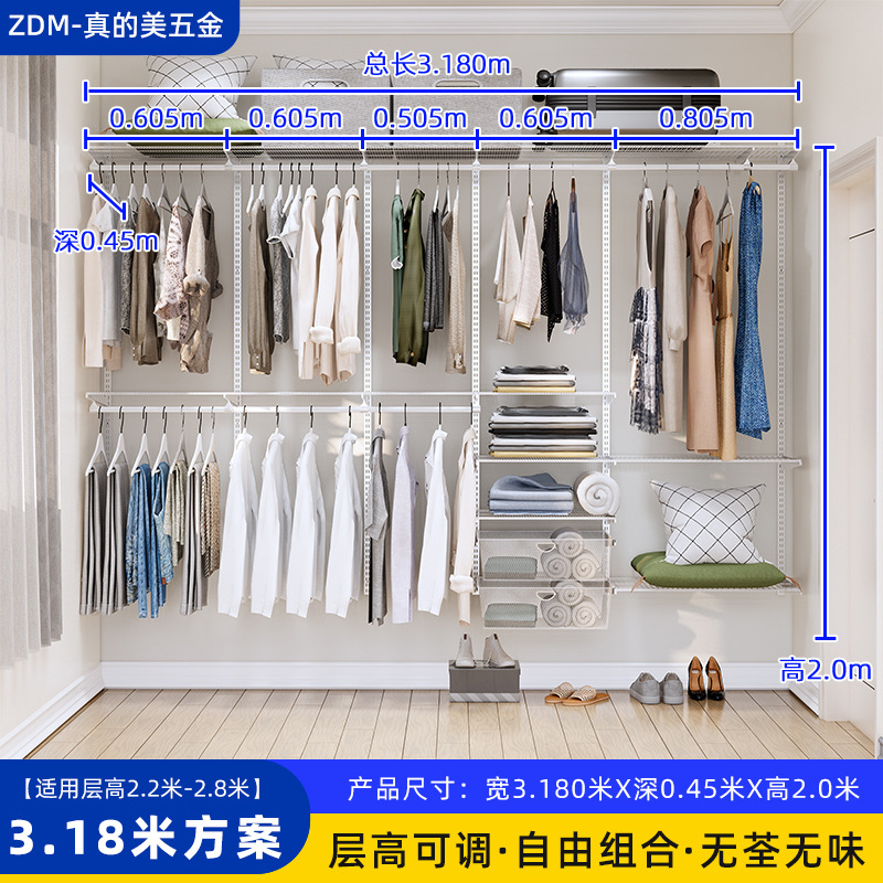 Настенные металлические полки для гардероба для дома и спальни, настенная стойка, для гардеробной, полностью подвесные, регулируемые, аксессуары для сборки каркаса