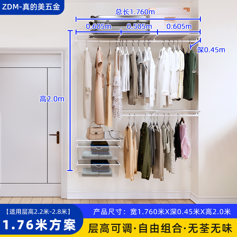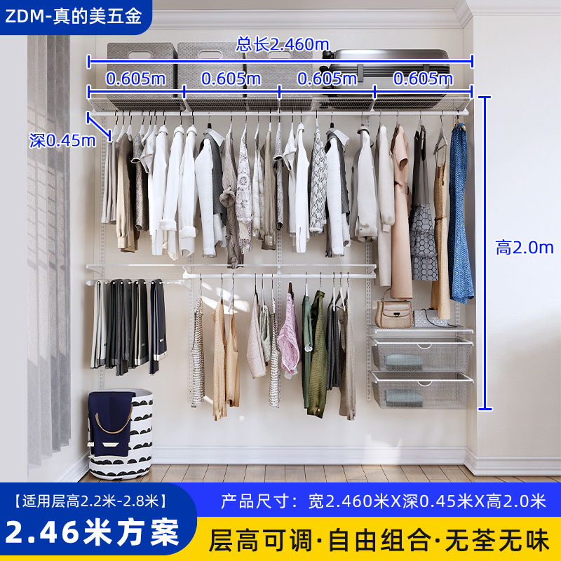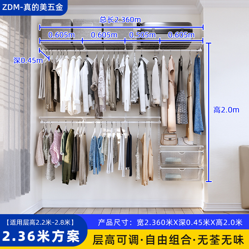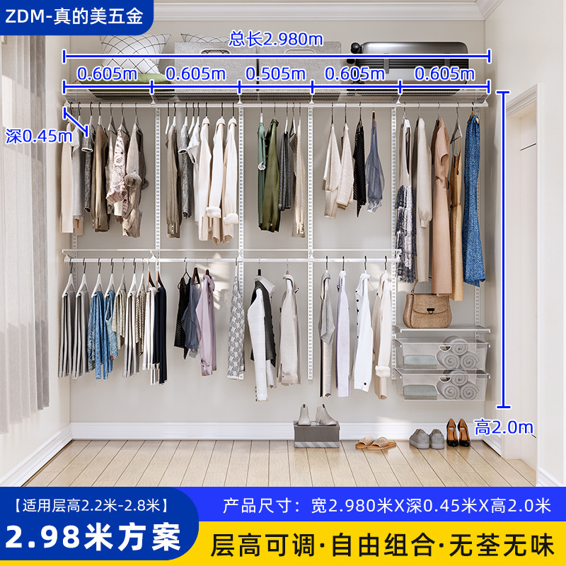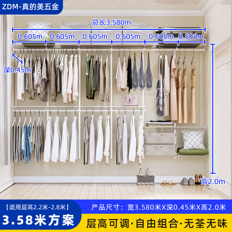 Настенные металлические полки для гардероба для дома и спальни, настенная стойка, для гардеробной, полностью подвесные, регулируемые, аксессуары для сборки каркаса
