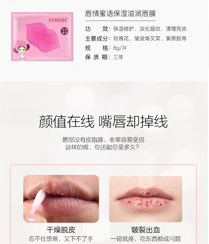 XYBB маска для губ патч-маска для губ удаляет омертвевшую кожу, выцветает линии губ, затемняет вокруг губ, увлажняет и увлажняет губы, розовая маска для губ.