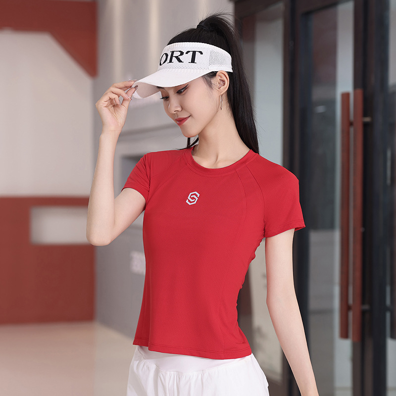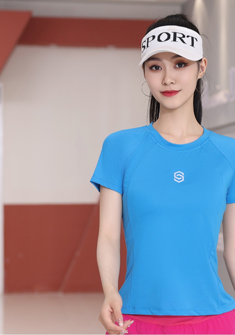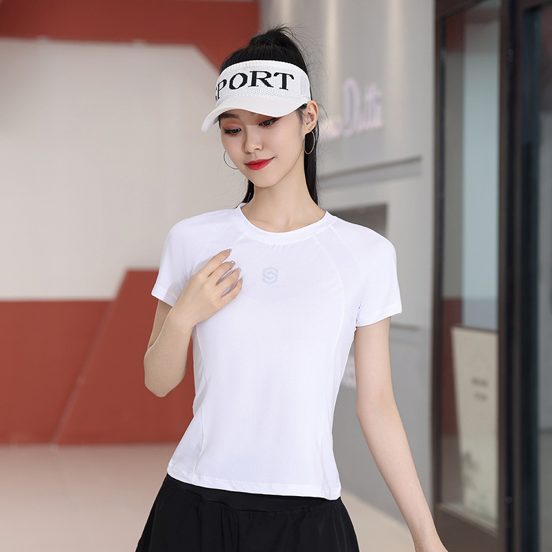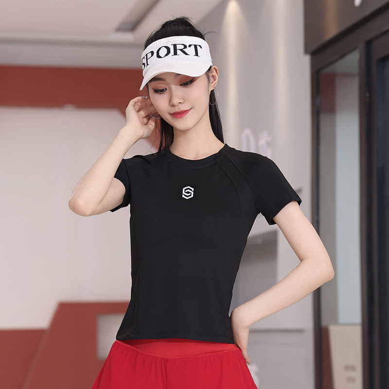 Летняя новая спортивная футболка женский быстросохнущий тонкий тонкий рукав с короткими рукавами для бега фитнес-костюм йога топ с круглым вырезом T