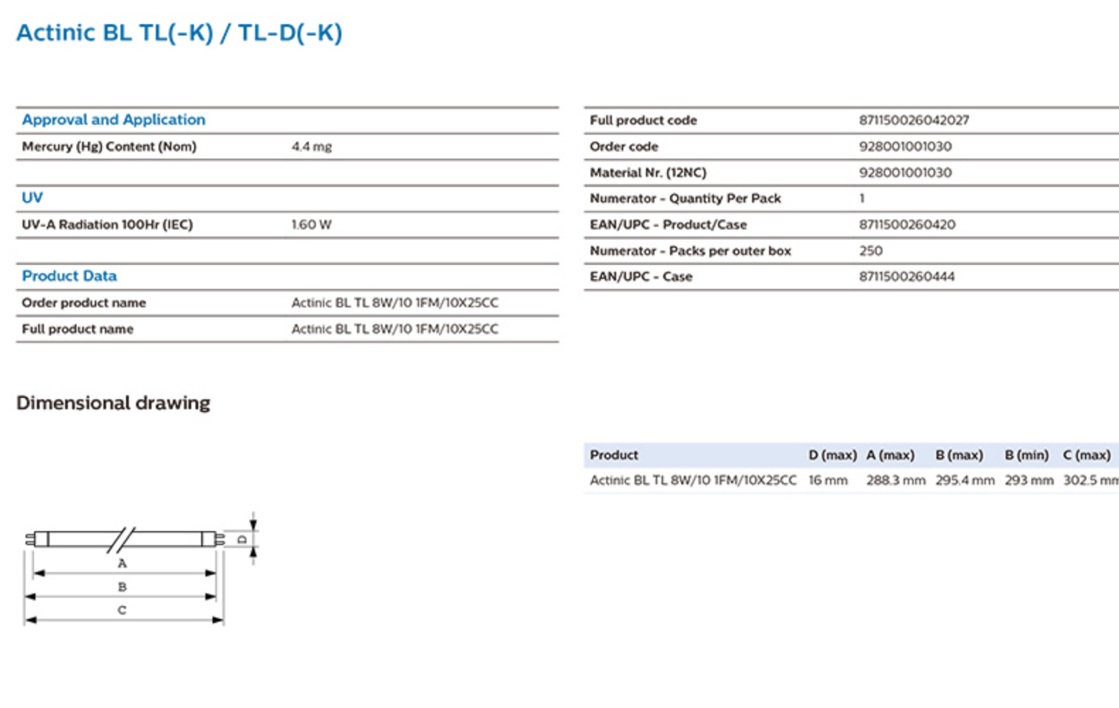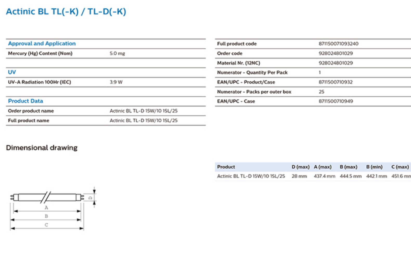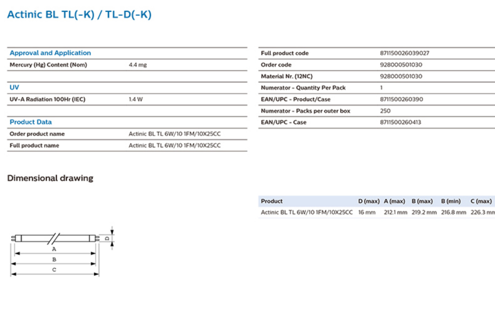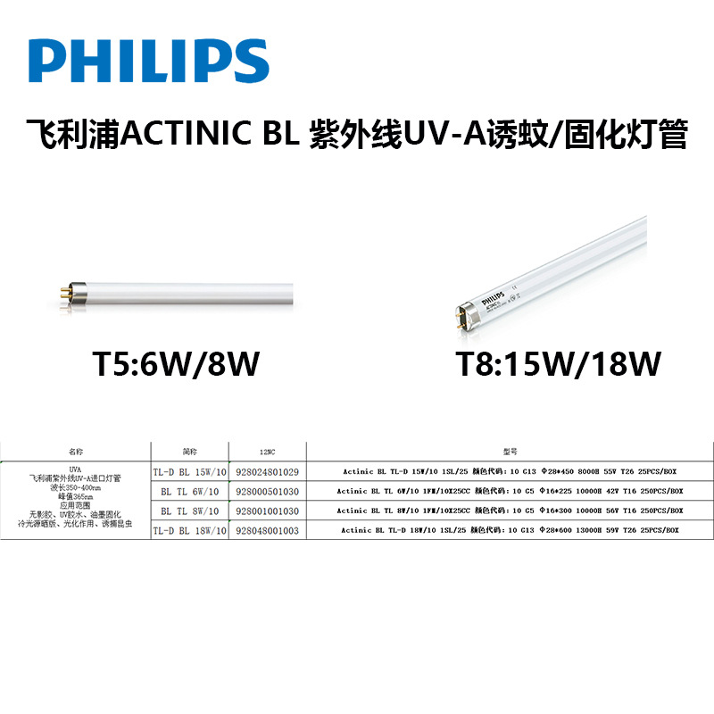 Philips UVA Ультрафиолетовая лампа ACTINIC BL TL6W8W/10 TL-D15W18W/10 противомоскитная лампа
