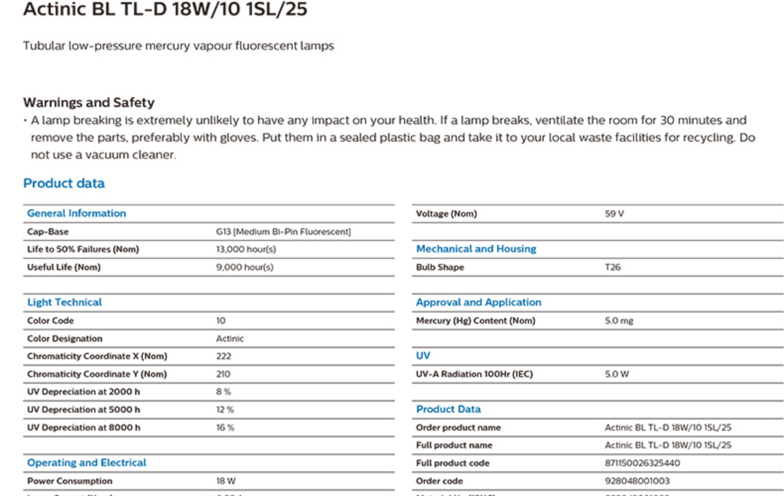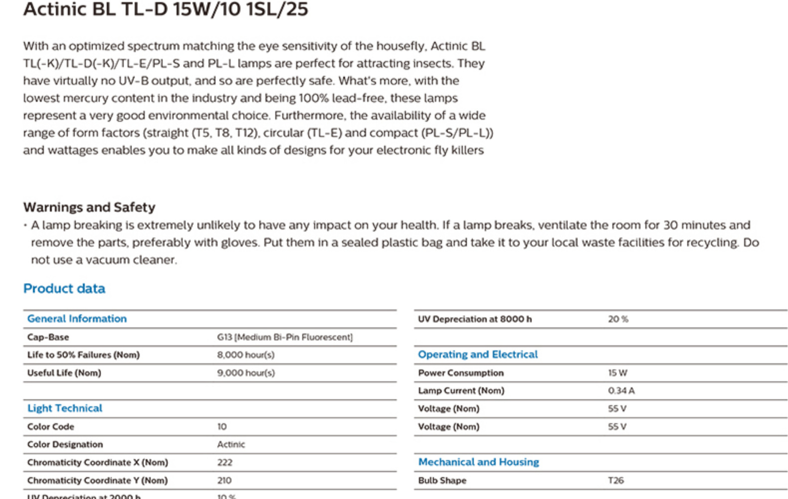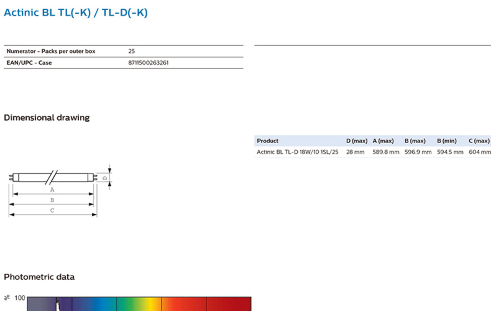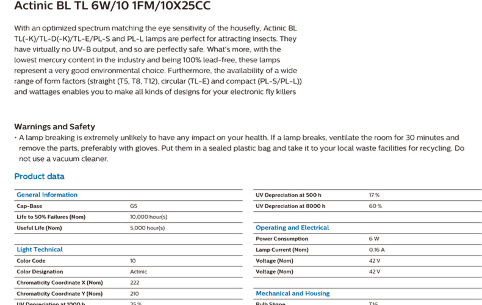 Philips UVA Ультрафиолетовая лампа ACTINIC BL TL6W8W/10 TL-D15W18W/10 противомоскитная лампа