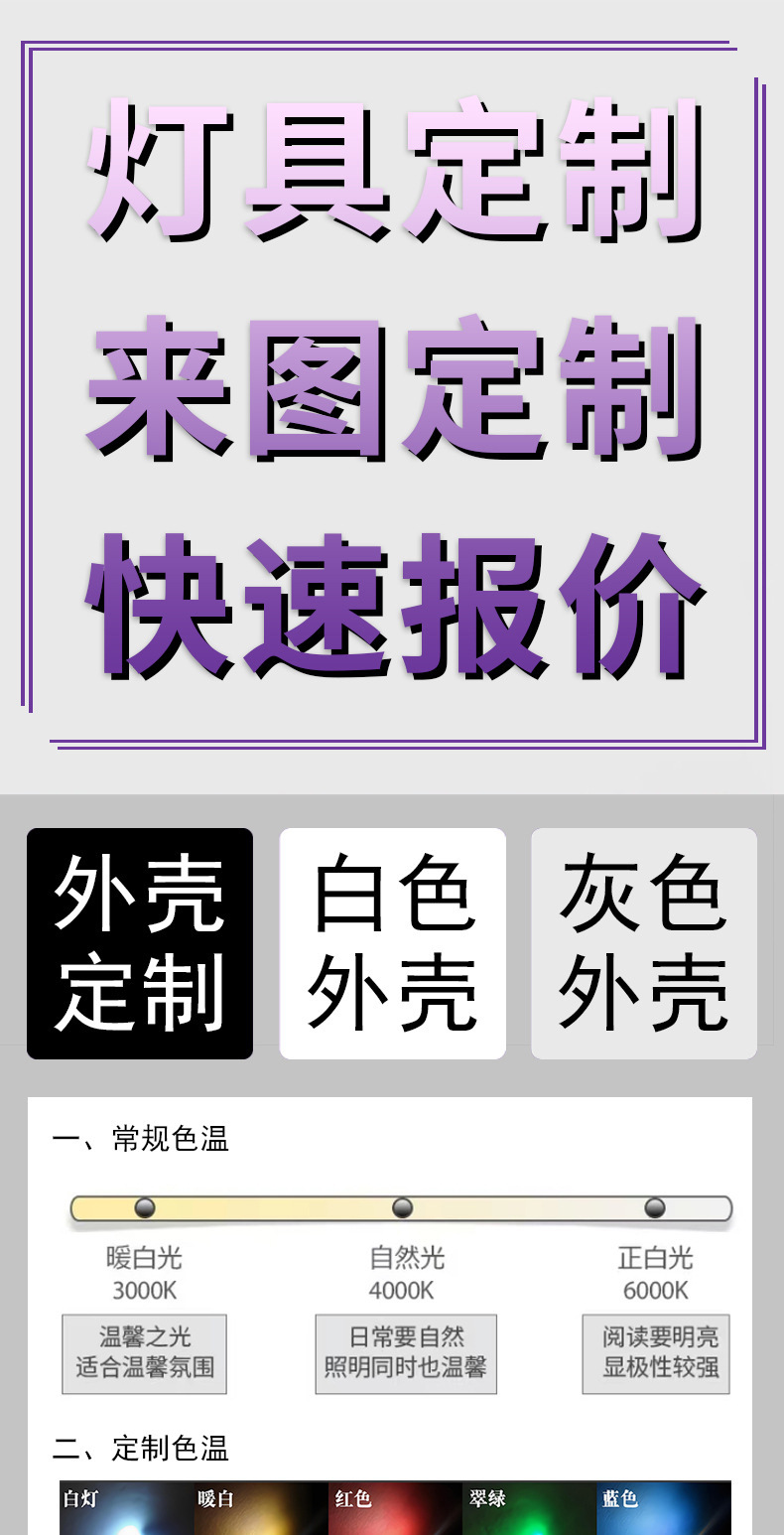 Пластиковые модели-3000K; Пластиковые модели-4000K; Пластиковые модели-6000K; Пластиковые модели-цветной свет; Алюминиевые модели-3000K; Алюминиевые модели-4000K; Алюминиевые модели-6000K; Алюминиевый материал-цветной свет