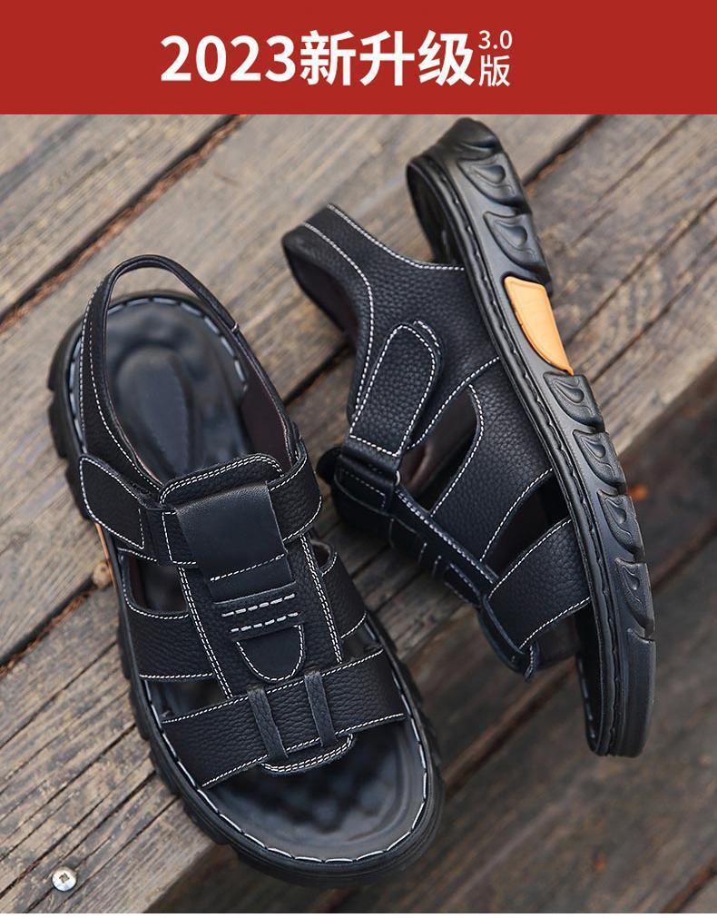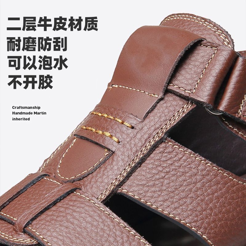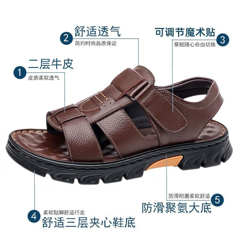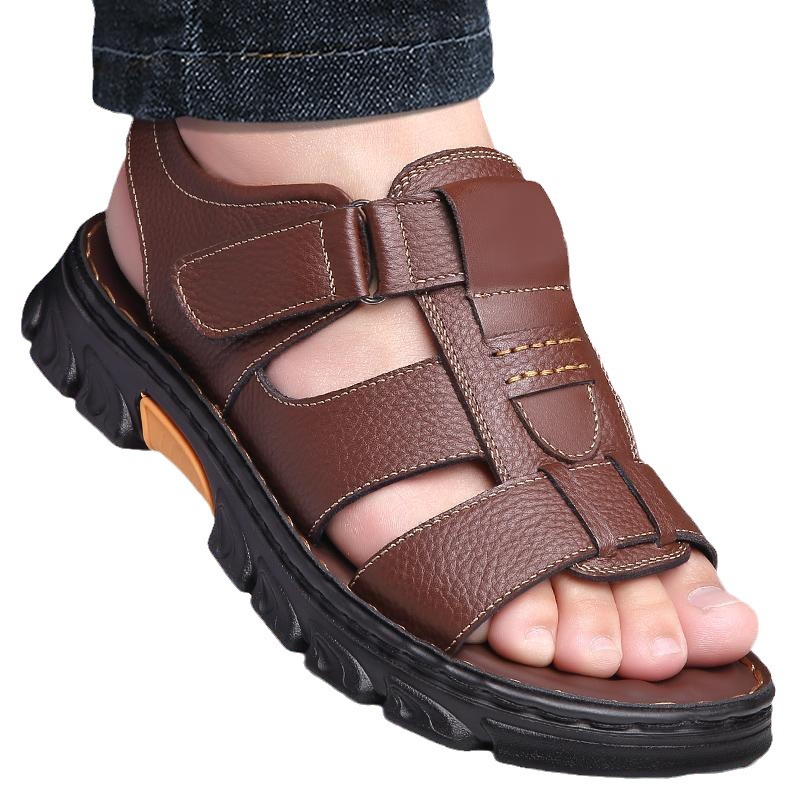 Фабрика прямых продаж первый слой коровьих сандалий мужские кожаные кожаные 2024 летние новые нескользкие пляжные туфли для вождения тапочки