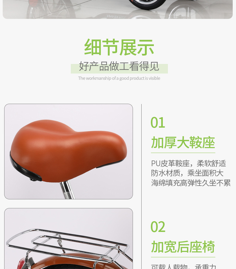 Цельное колесо Honor черного цвета, переднее колесо 16inch года, заднее колесо 20inch года, модель сиденья принимает индивидуальные настройки; Цельное колесо Fairy бежевого цвета, переднее колесо 16inch заднее колесо 20inch стиль кузова; Honor черный цельный колесо переднее колесо 16inch заднее колесо 20inch + багажник принимает настройку; Цельное колесо Fairy бежевое переднее колесо 16inch заднее колесо 20inch + багажник; Цельное колесо Fairy бежевого цвета, переднее колесо 16inch заднее колесо, модель с 20inch сиденьями; Целое колесо Honor черного цвета, переднее колесо 16inch года, заднее колесо 20inch года, модель кузова принимает индивидуальные настройки