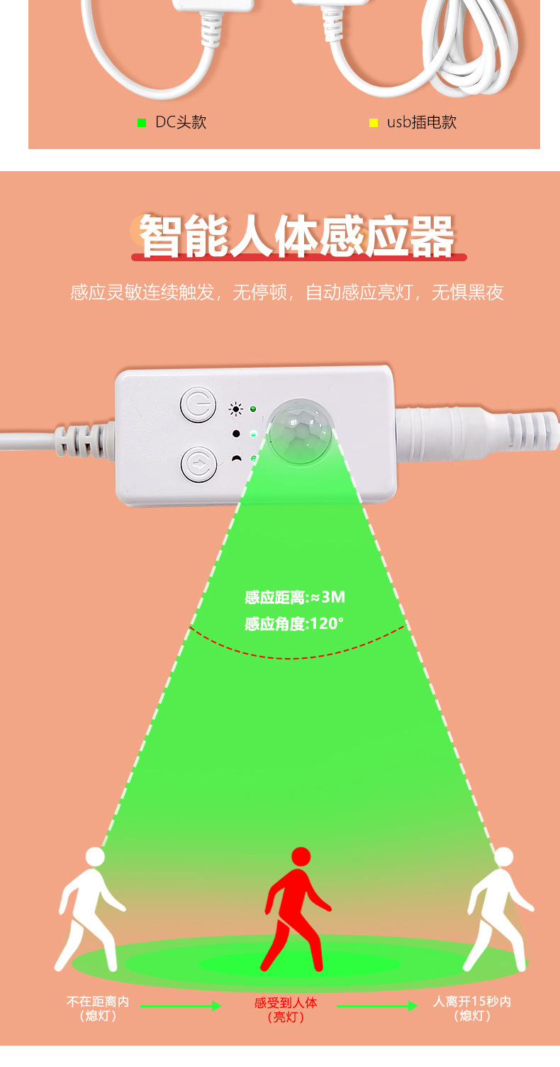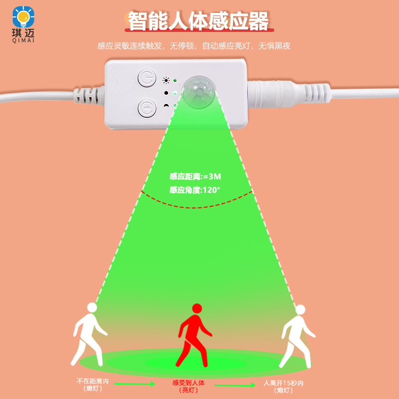 Монохромная лампа с контроллером инфракрасного тела 3A батарейный блок индукционный переключатель интеллектуальный светодиодный датчик освещения