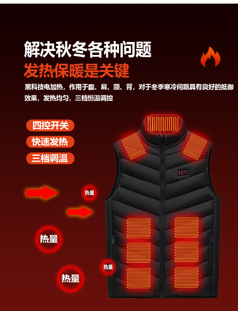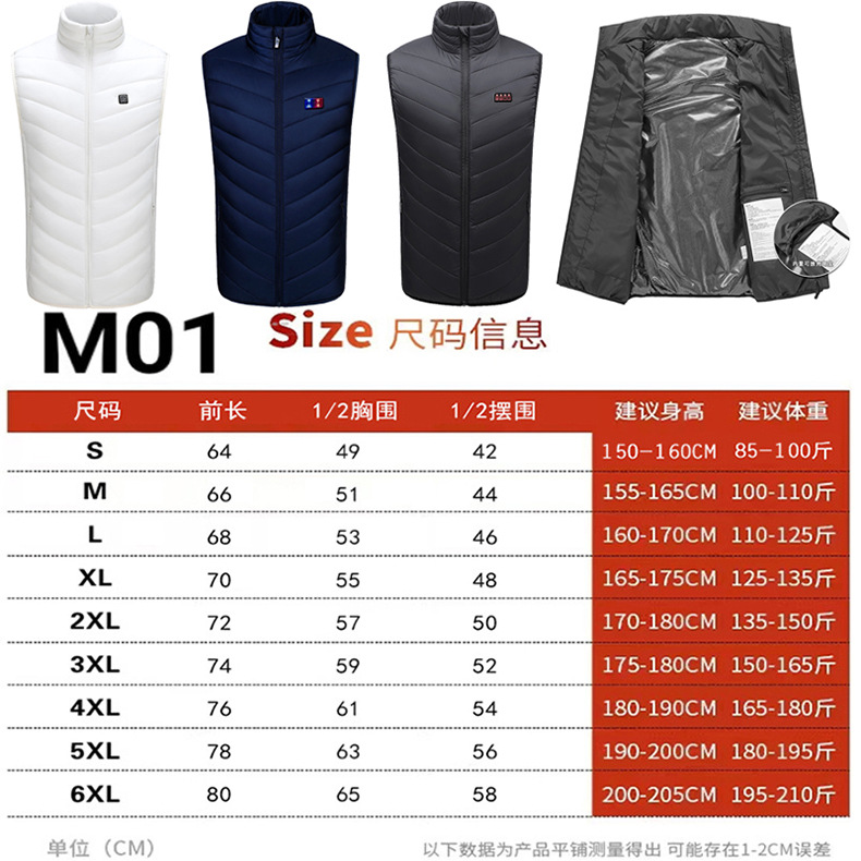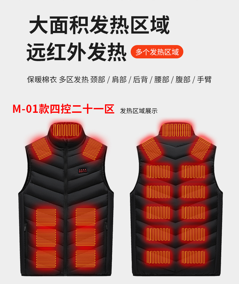 Мужской жилет с трансграничным подогревом M01, зимний уличный USB-жилет с интеллектуальным подогревом и воротником-стойкой, электрический подогрев, постоянная температура, морозостойкий терможилет