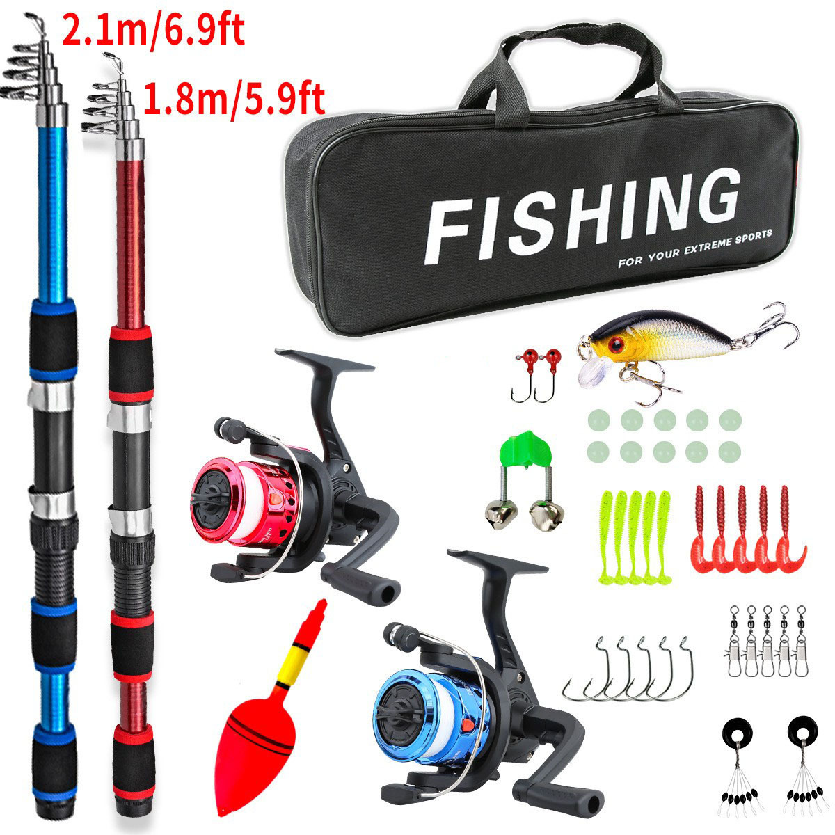 全套带包(鱼竿+带线渔轮+配件饵盒+包)--重量808克