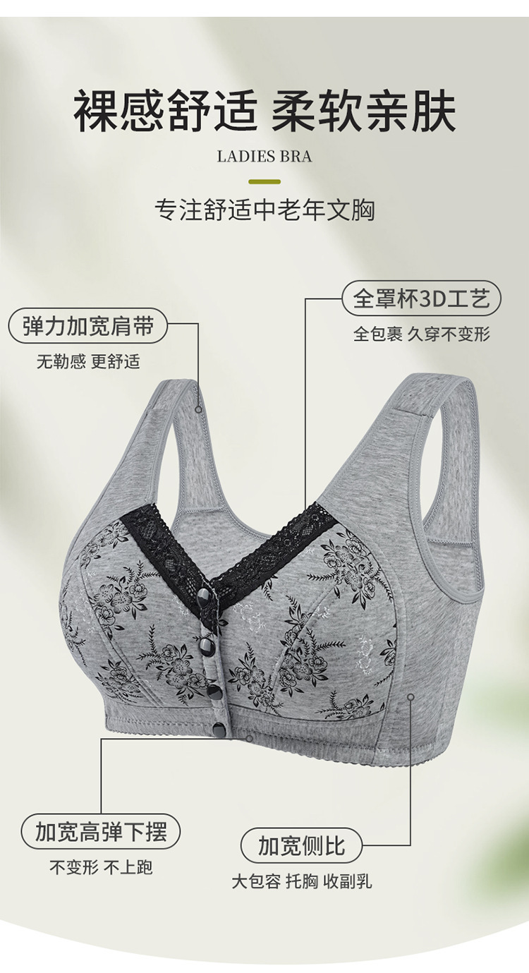 Стальная чашка передняя пряжка среднего и пожилого нижнего белья для женщин с принтом без стального кольца широкие плечевые ремни новый большой размер бюстгальтер