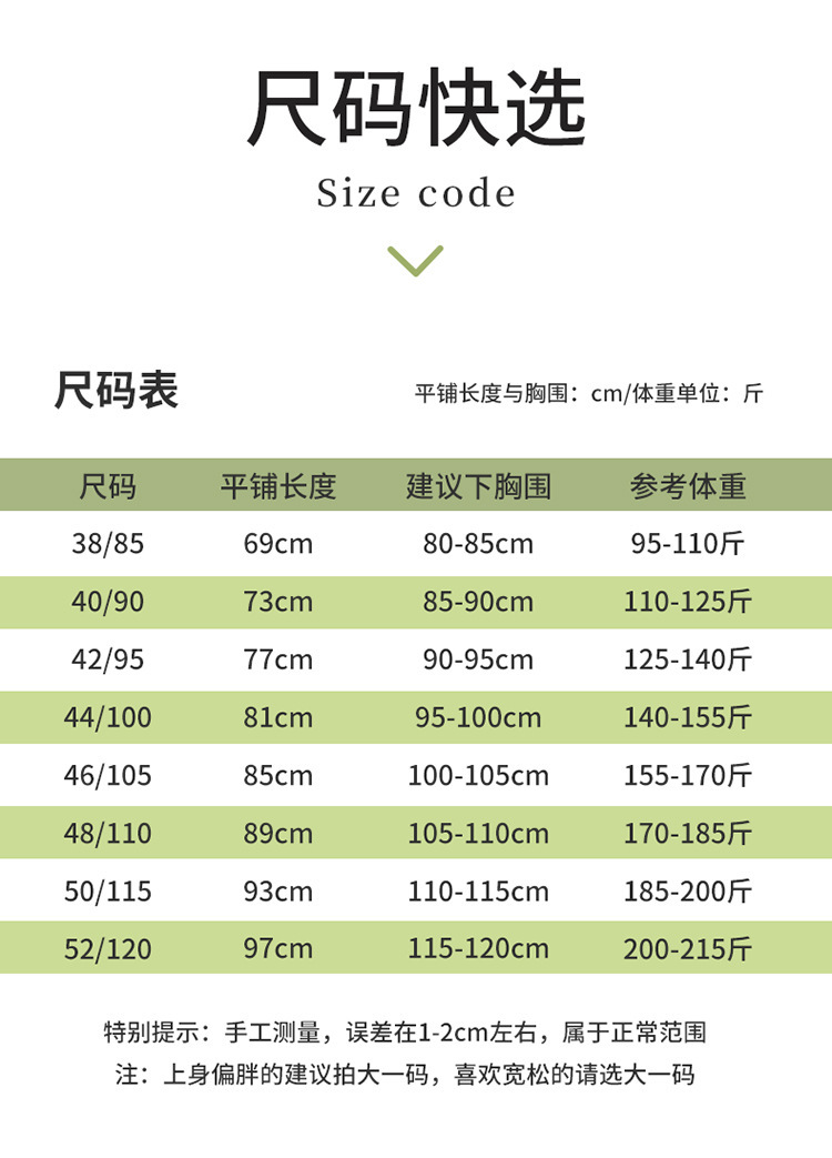 38/85; 40/90; 42/95; 44/100; 46/105; 48/110; 50/115; 52/120