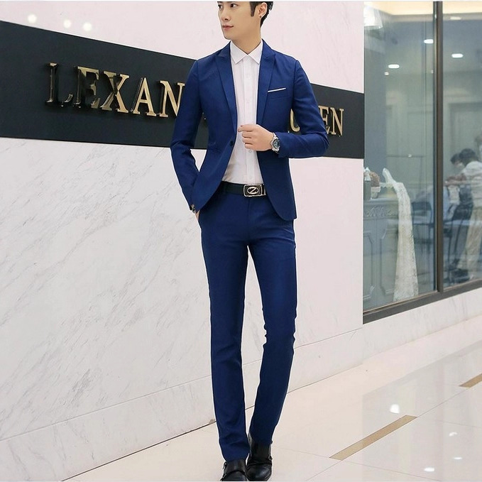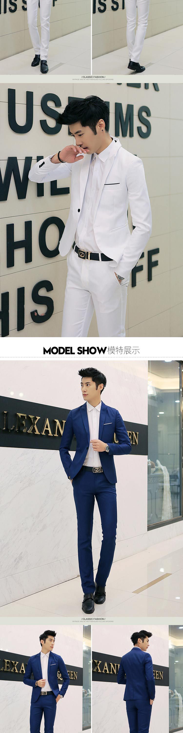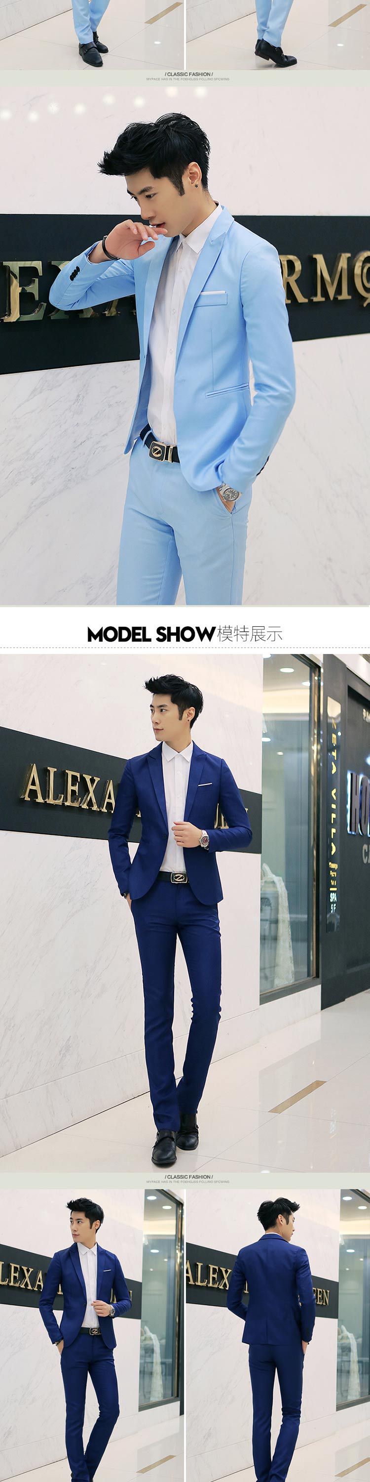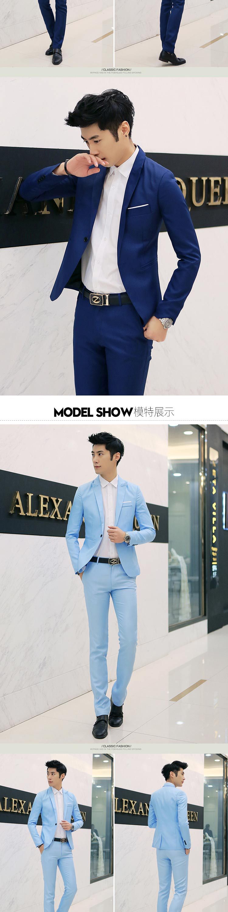Весенний и осенний новый мужской однорядный пуговица одноцветный костюм брюки корейская версия тонкого мужского костюма большого размера