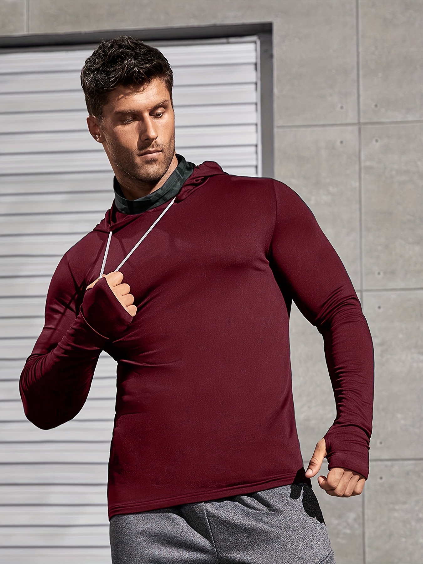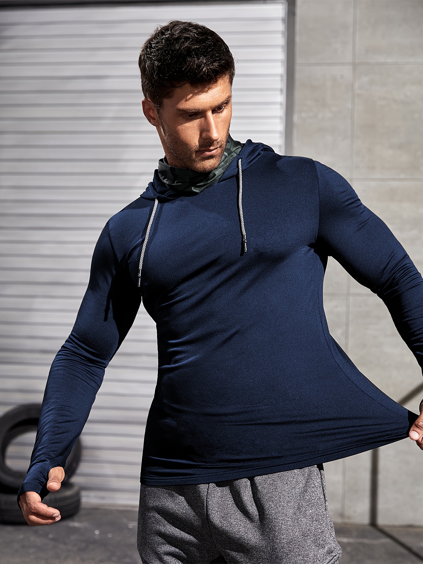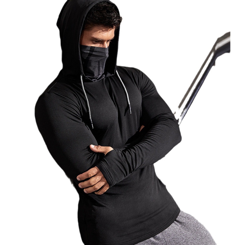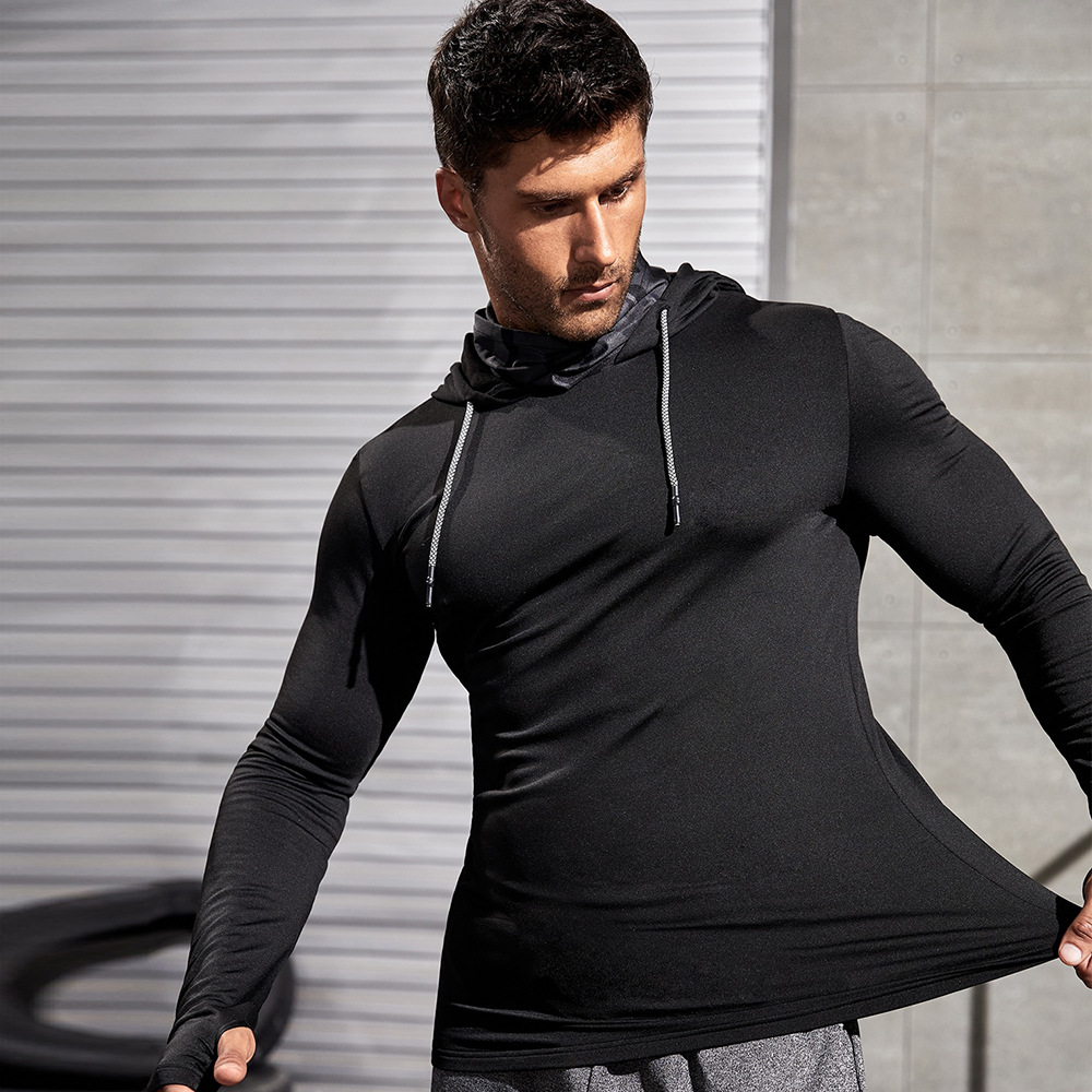Европейские и американские новые мужские топы 2025 года, одежда для фитнеса с капюшоном, однотонная спортивная одежда для бега, повседневная, с длинными рукавами, дышащая, впитывающая пот