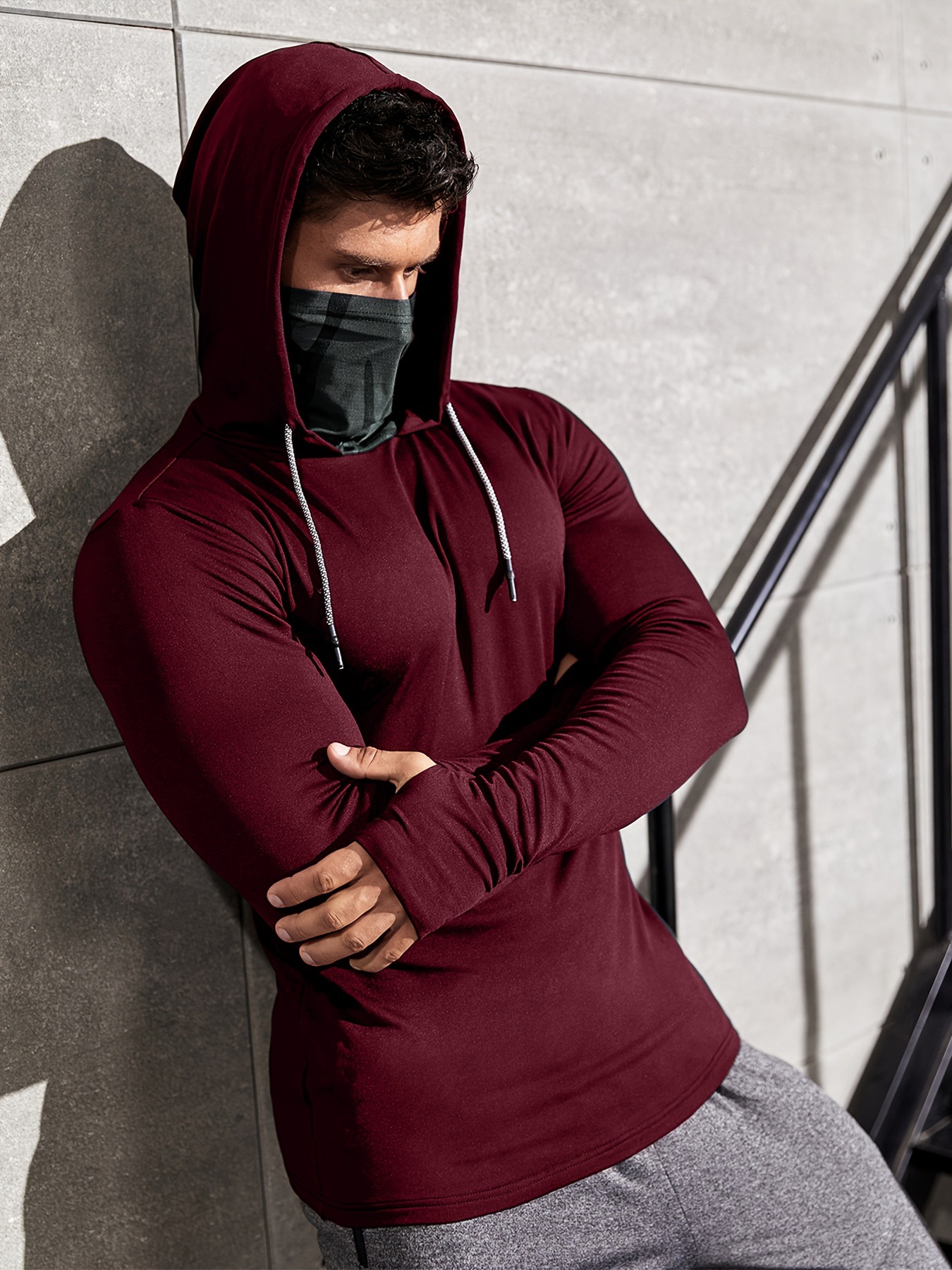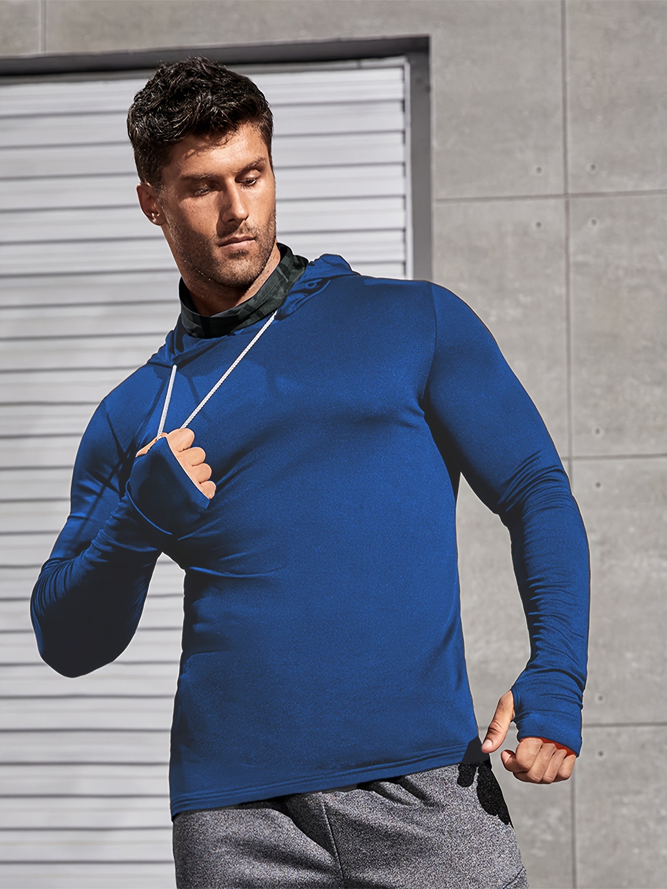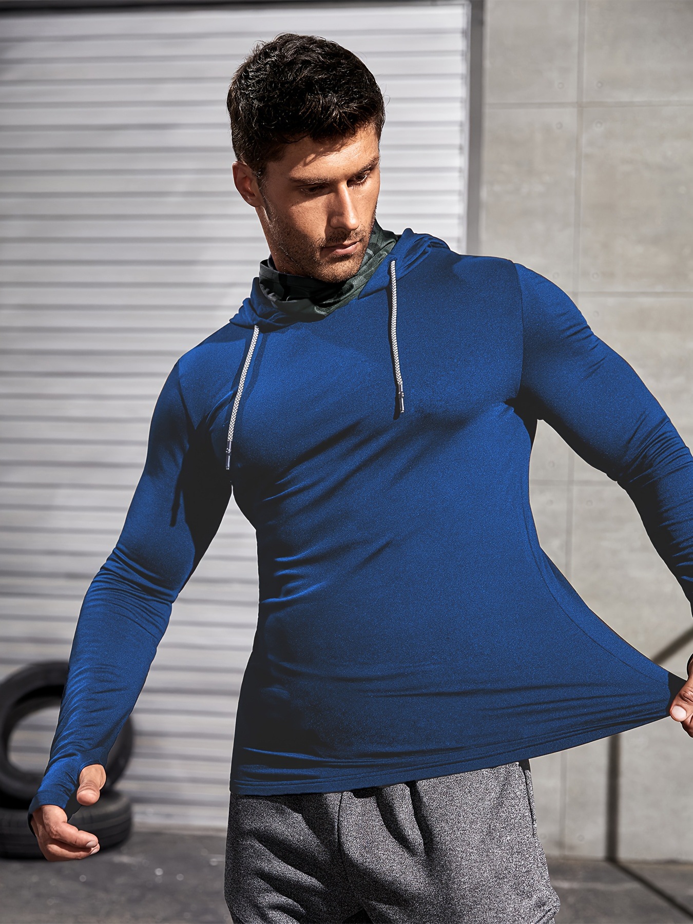 Европейские и американские новые мужские топы 2025 года, одежда для фитнеса с капюшоном, однотонная спортивная одежда для бега, повседневная, с длинными рукавами, дышащая, впитывающая пот