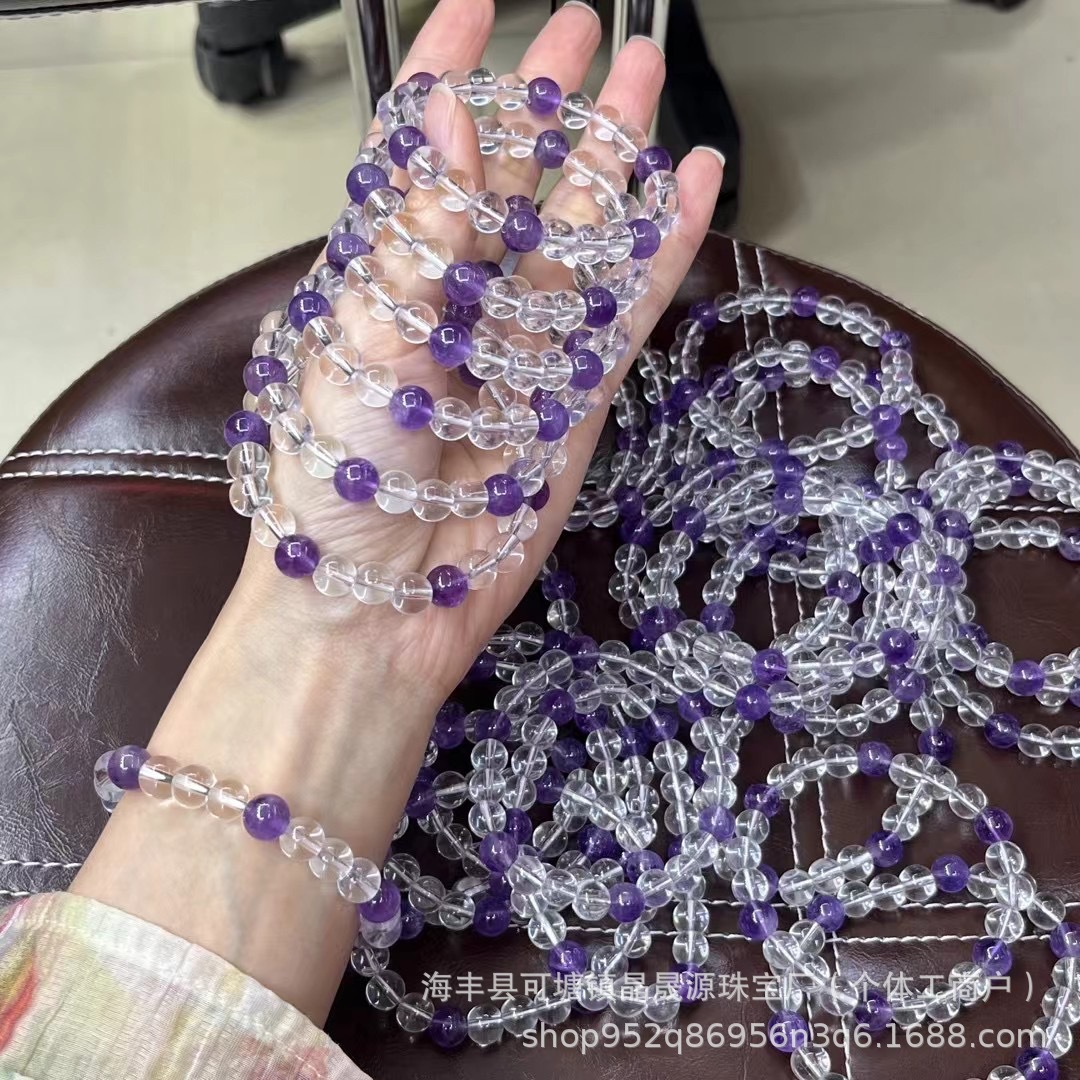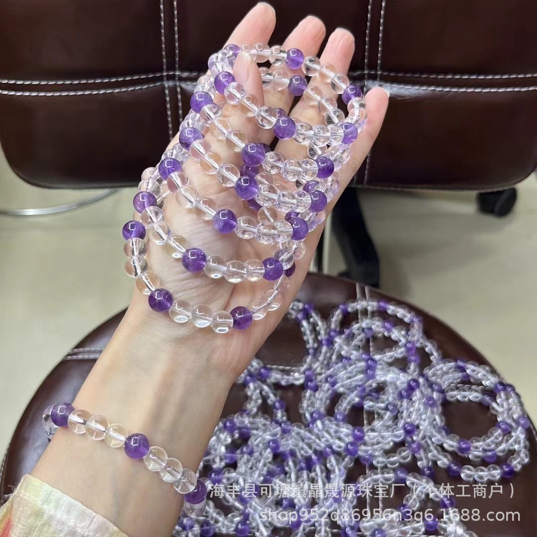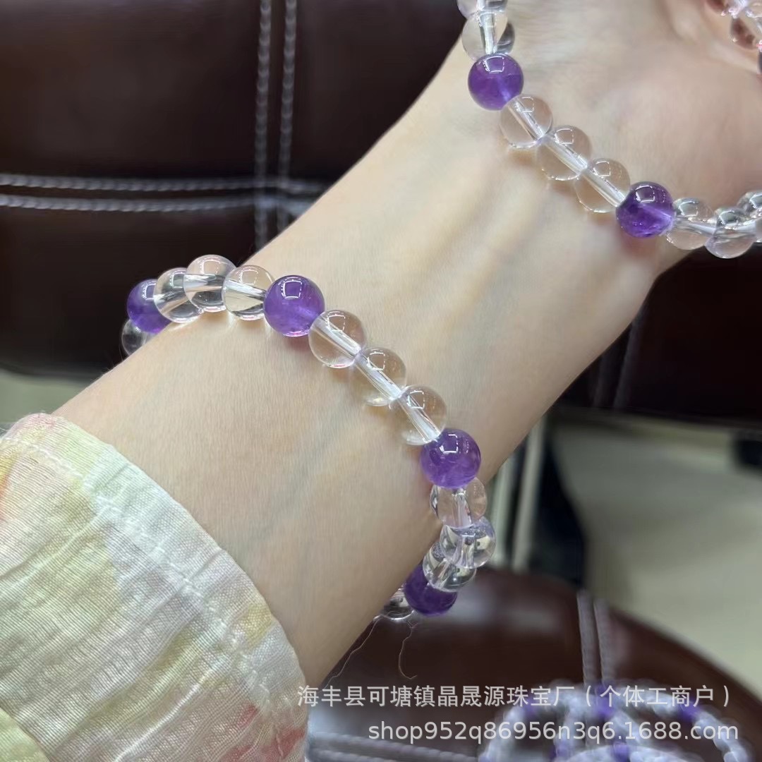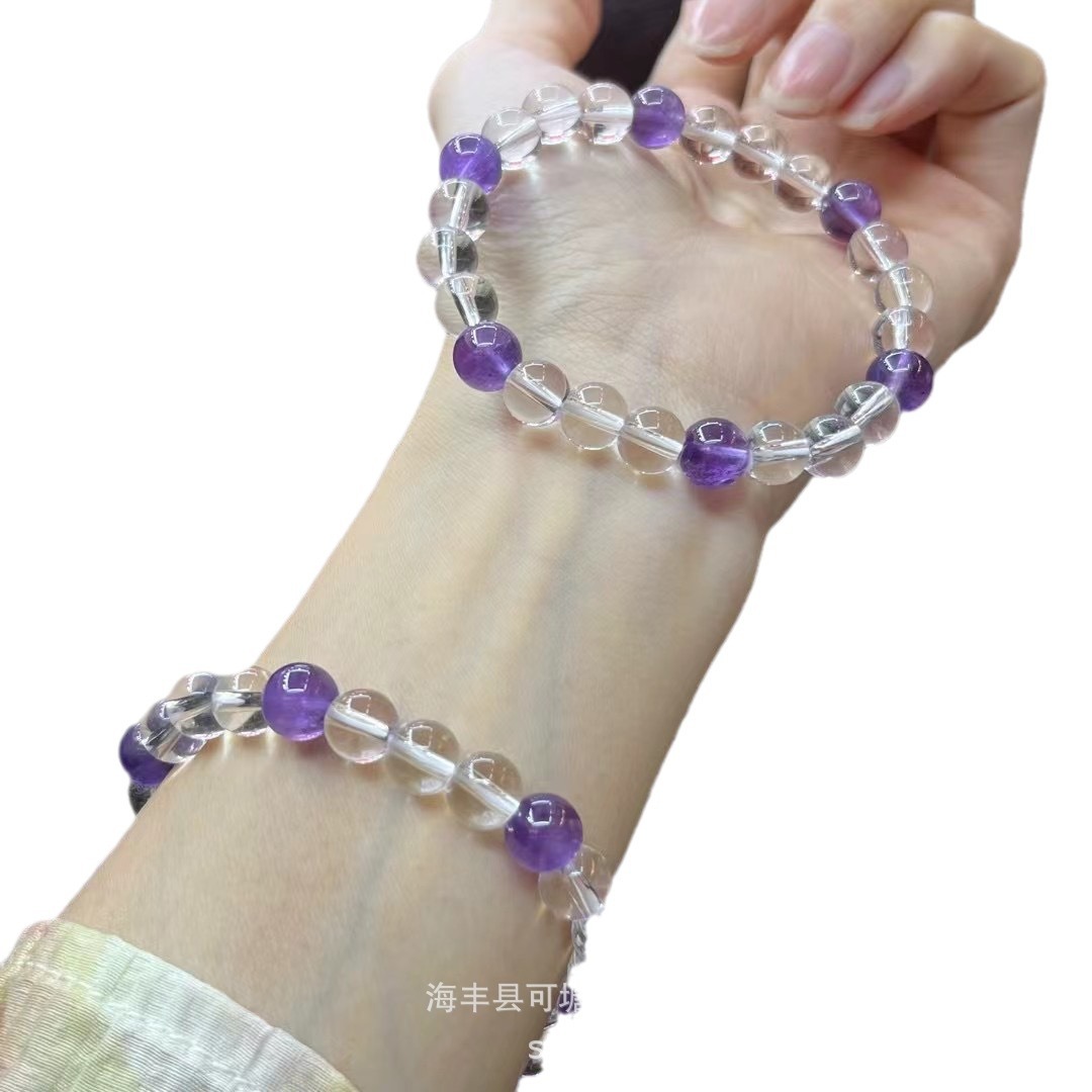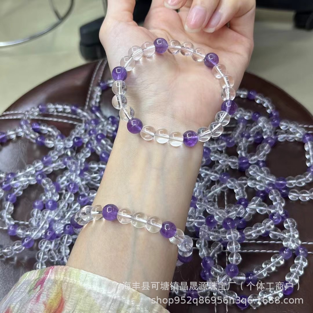 九紫离火紫水晶白水晶手链款冰种女网红手串直播间福利款原创设计 批发量越大价格越低,可供直播间长期合作,欢迎来电私聊