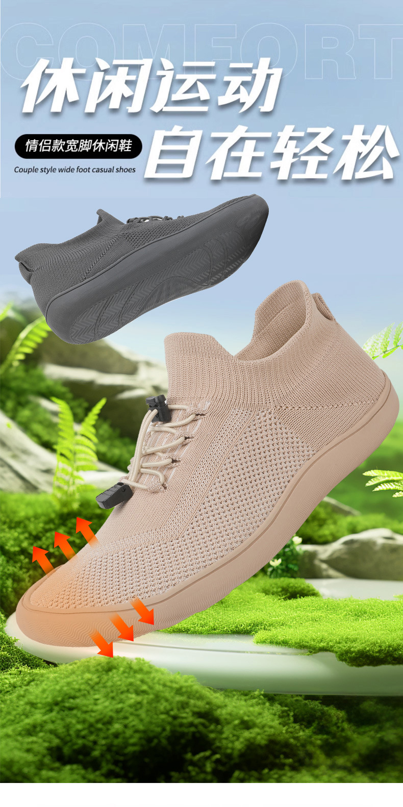 Трансграничные 2024 наружные походные туфли Мужская средняя группа летающих широкая обувь носки носки обувь дышащая нескользящая лагерная обувь женская модель