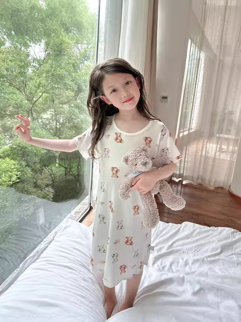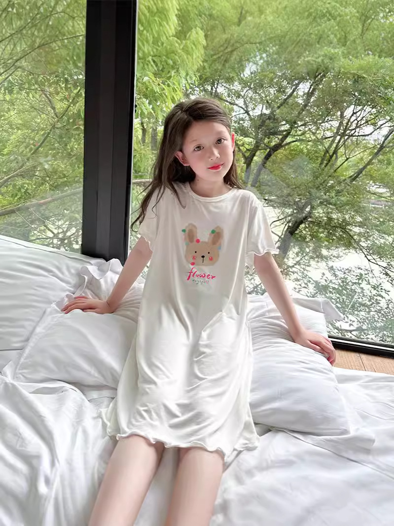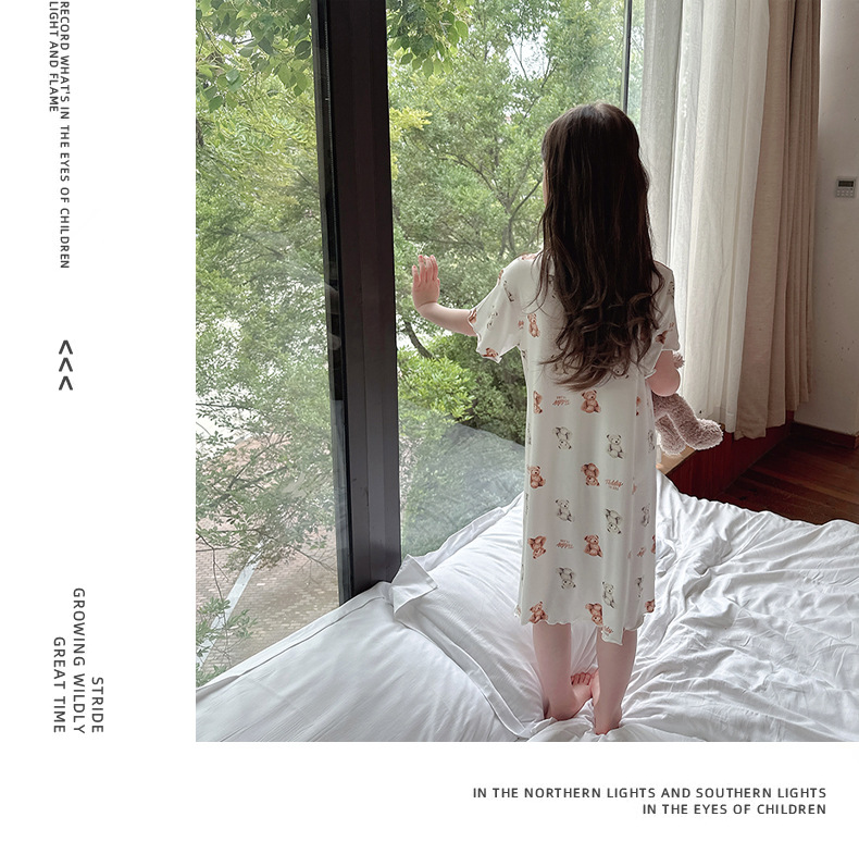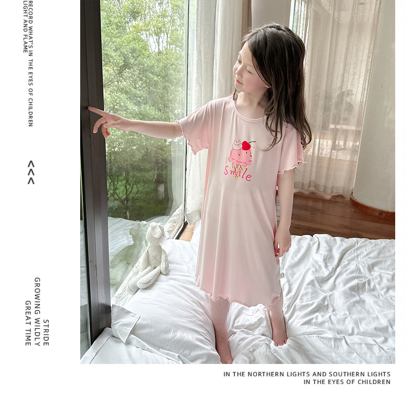 Модальные ночные сорочки для девочек, летние платья для девочек, детская домашняя одежда с коротким рукавом, пижамы для девочек в корейском стиле