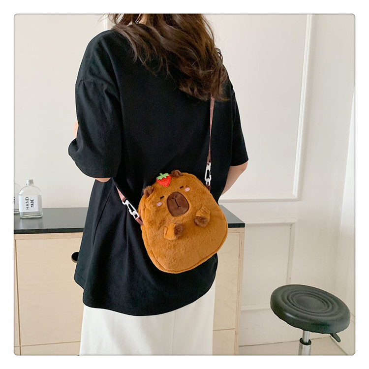 Кукла Капибара плюшевый мультфильм гамбургер водная морская свинка сумка трансграничная клубничная сумка для мобильного телефона