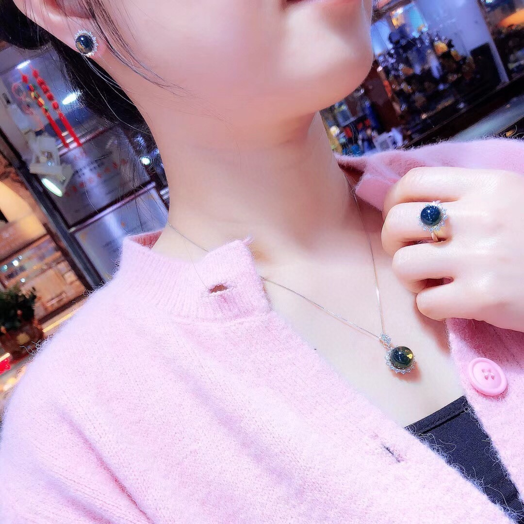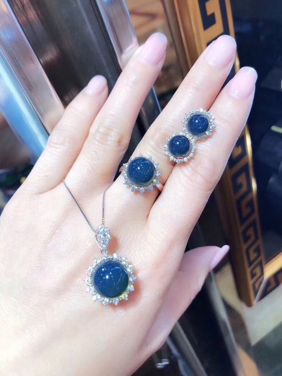 Комплект украшений из стерлингового серебра синего и янтарного цвета