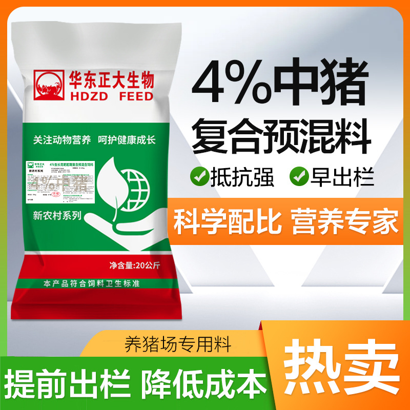 Кормовая смесь Huadong Zhengda для средних и крупных свиней, стимулирующая рост и откорм, с содержанием 4% протеина.