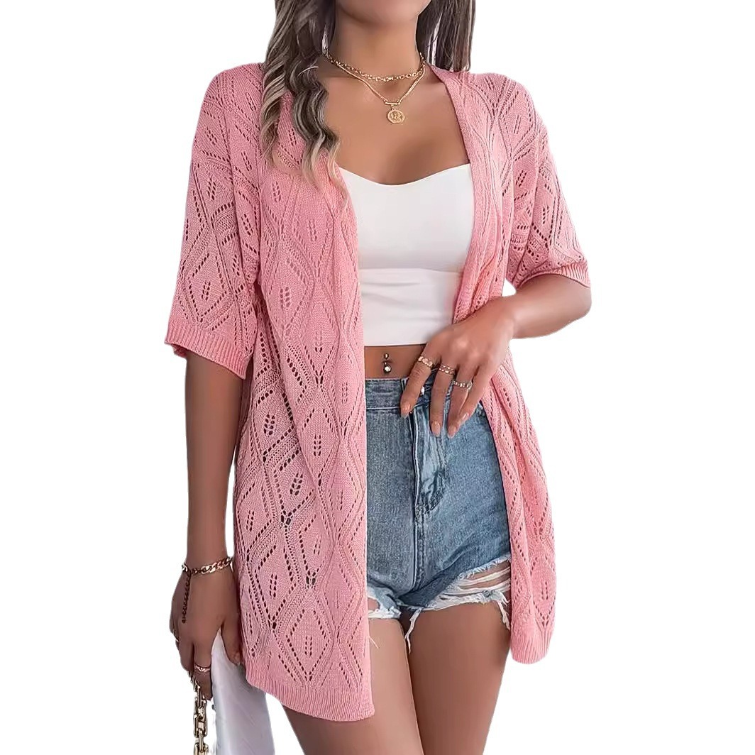 Рекордная летняя полая клетка с короткими рукавами кардиган пляжный солнцезащитный костюм Amazon Европа и США трансграничная женская одежда