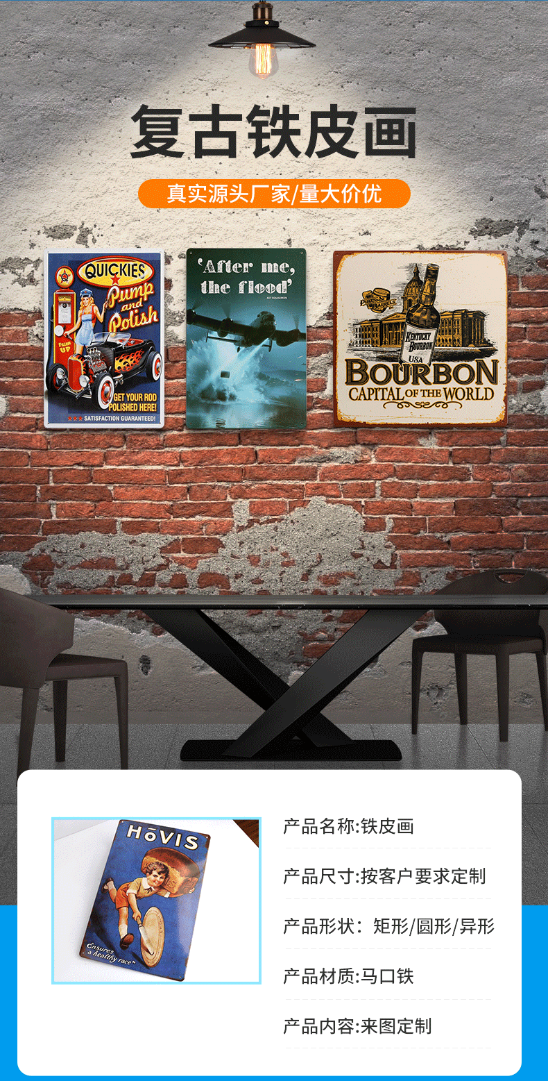 Индивидуальные железные картины из жести, европейская и американская ретро-мебель для дома на заказ, поделки из металла, декоративные картины для экспортного бара