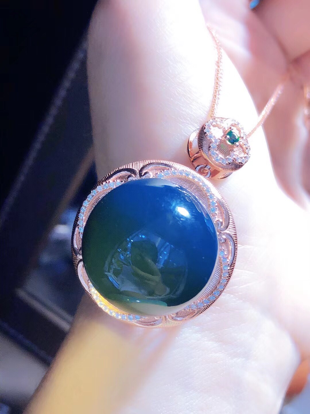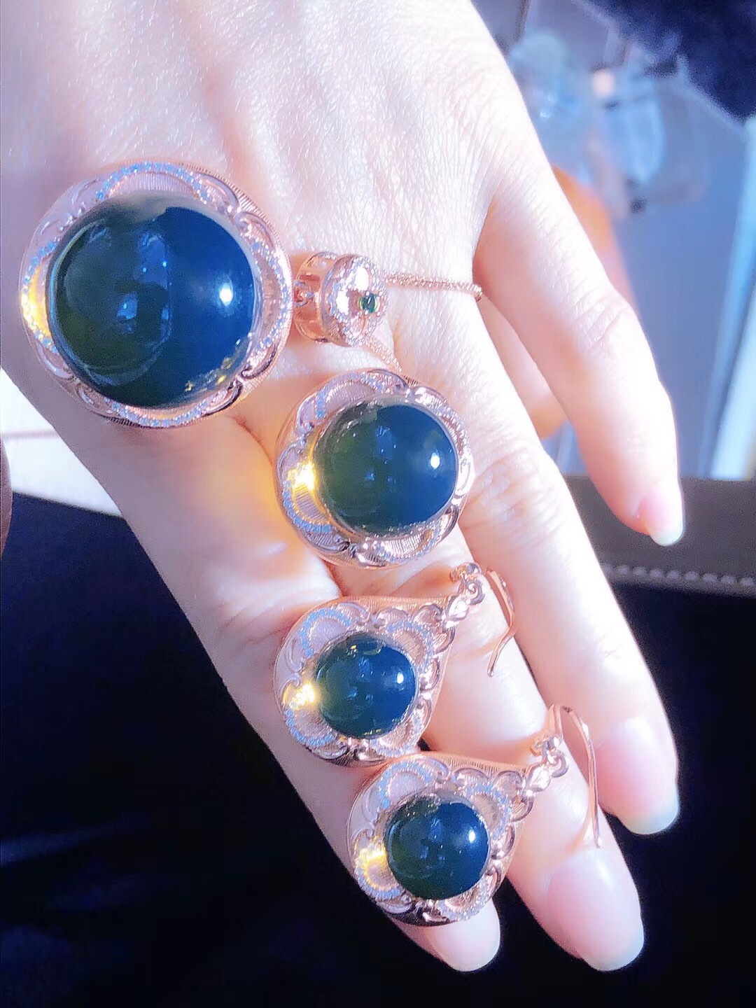 Комплект украшений из стерлингового серебра синего и янтарного цвета
