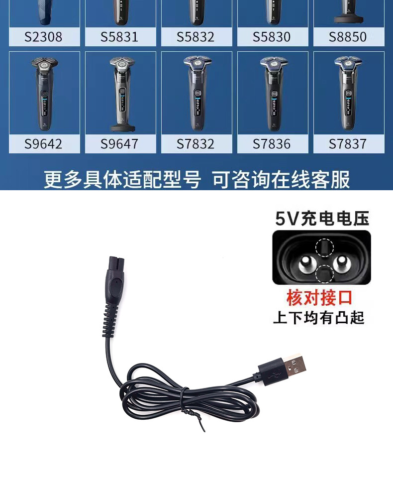 Подходит для зарядного устройства электробритвы Philips, аксессуары, USB-кабель питания, кабель для зарядки, автомобильный кабель питания, универсальный.