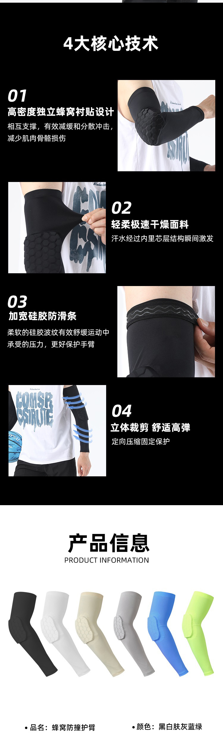 Баскетбольные сотовые нарукавники, спортивная защита от столкновений, трансграничная поставка для взрослых, готовое защитное снаряжение для улицы, мужская защита от солнца