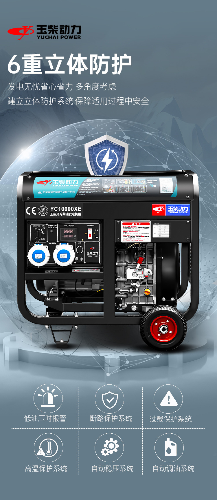 Yuchai дизель-генераторная установка 3/5/6/8/10 кВт небольшой бытовой 12KW однофазная 220 трехфазная 380 чистая медь