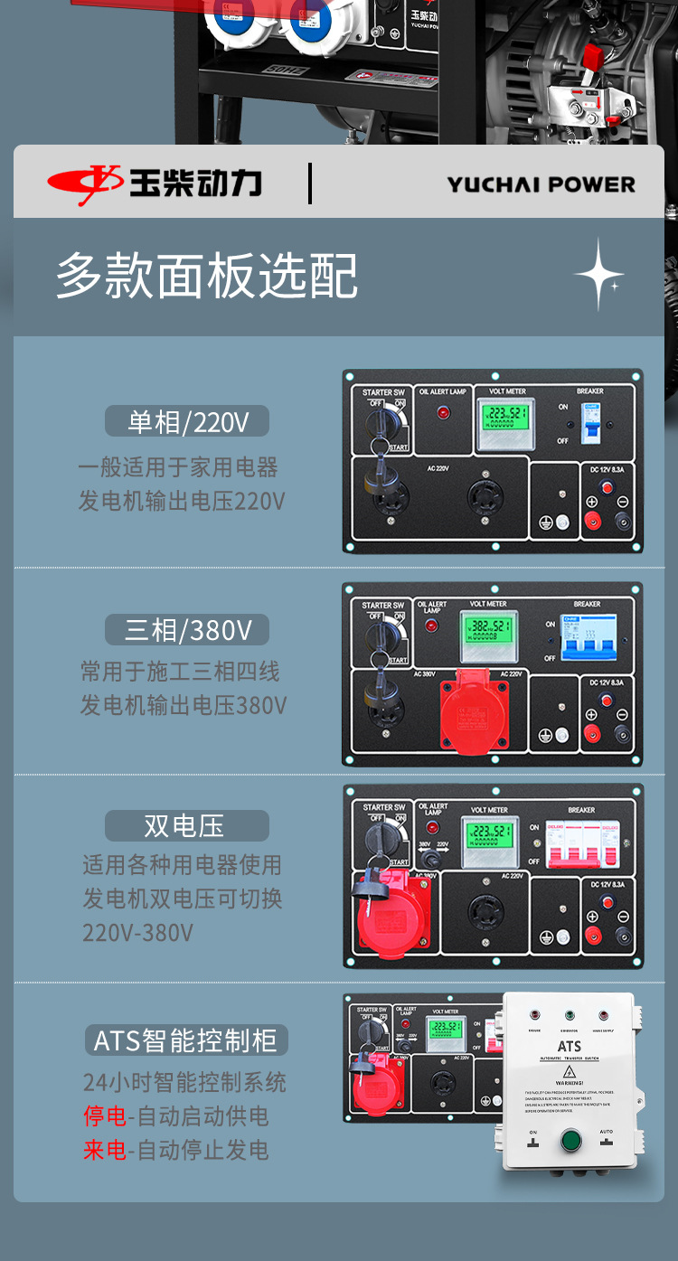 Новая модель Yuchai 3,5 кВт с открытой стойкой 220 В; Новая модель открытой стойки Yuchai 5,5 кВт 220 В; Новая открытая рама Yuchai 5,5 кВт 380 В; Новая модель Yuchai 5,5 кВт с открытой стойкой и двойным напряжением; Новая модель Yuchai 6,5 кВт с открытой стойкой 220 В; Новый открытый каркас Yuchai 6,5 кВт 380 В; Новая модель Yuchai 6,5 кВт с открытой стойкой и двойным напряжением; Новая модель открытой стойки Yuchai 8KW 220V; Новая модель Yuchai 8KW с открытой полкой 380 В; Новая модель Yuchai 8KW с открытой стойкой и двойным напряжением; Новая модель открытой стойки Yuchai 10 кВт 220 В; Новая модель Yuchai 10 кВт с открытой полкой 380 В; Новая модель Yuchai с открытой стойкой 10 кВт и двойным напряжением; Новый Yuchai 11KW открытая рама 220V; Новый Yuchai 11 кВт с открытой рамой и двойным напряжением; Новый Yuchai 12KW открытая рама 220V; Новый Yuchai 12KW с открытой рамой и двойным напряжением; Новый Yuchai 5,5 кВт, низкий уровень шума, 220 В.; Новое двойное напряжение Yuchai 5,5 кВт с низким уровнем шума; Новый Yuchai 6,5 кВт, малошумный, 220 В.; Новое двойное напряжение Yuchai 6,5 кВт с низким уровнем шума; Новый Yuchai 8KW с низким уровнем шума 220 В; Новое двойное напряжение Yuchai 8 кВт с низким уровнем шума; Новый Yuchai 10 кВт с низким уровнем шума 220 В; Новый Yuchai 10 кВт с низким уровнем шума и двойным напряжением; Новый Yuchai 12 кВт с низким уровнем шума 220 В; Новый Yuchai 12 кВт с низким уровнем шума и двойным напряжением; Полностью автоматический старт и стоп-бокс 800