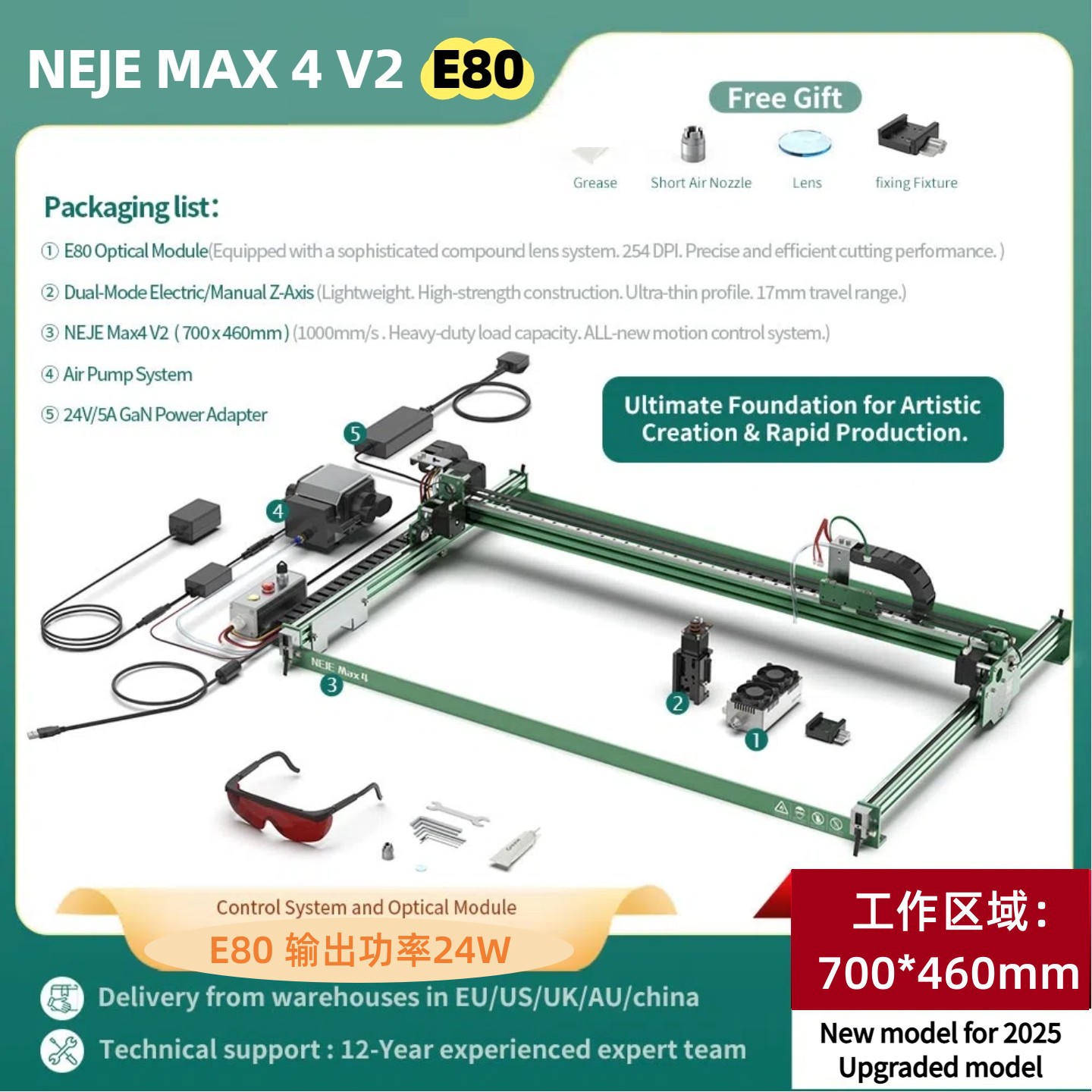 25 моделей NEJE Max 4 V2 E80 Электрический Z оси для лазерной резки древесины 1000mm/s большой площади