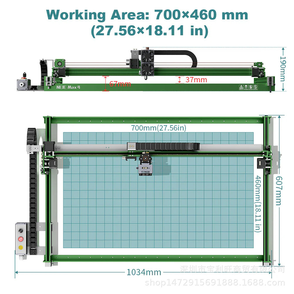雕刻尺寸:700×460mm (27.6×18.1"),可扩展至 700×1030mm (27.6×40.6")