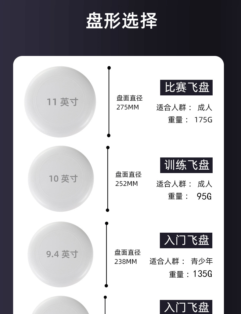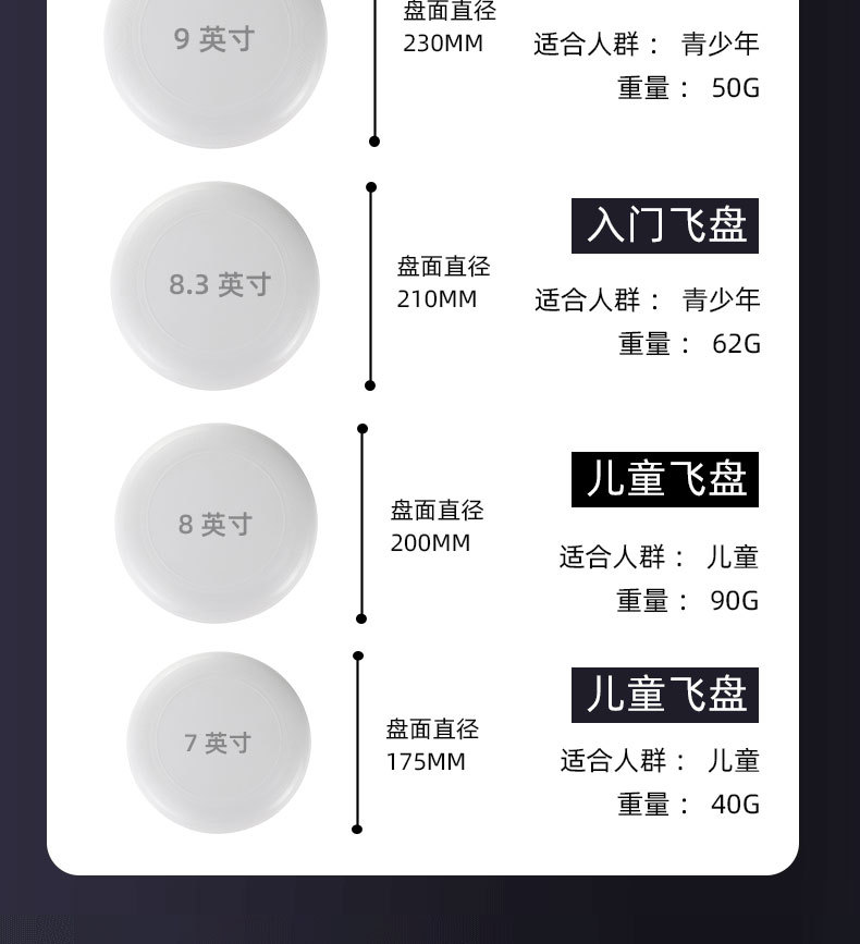 7 дюймов PP (случайная доставка); 8 дюймов PP (случайная доставка); 9 дюймов PP (случайная доставка); 10 дюймов PP (случайная доставка); 11 дюймов PP (случайная доставка); 8,5 дюймов PE (случайная доставка); 9,5 дюймов PE (случайная доставка); 11 дюймов PE (случайная доставка); Полый фрисби 24,5 cm (случайная доставка); Полый фрисби 27 см (случайная доставка)