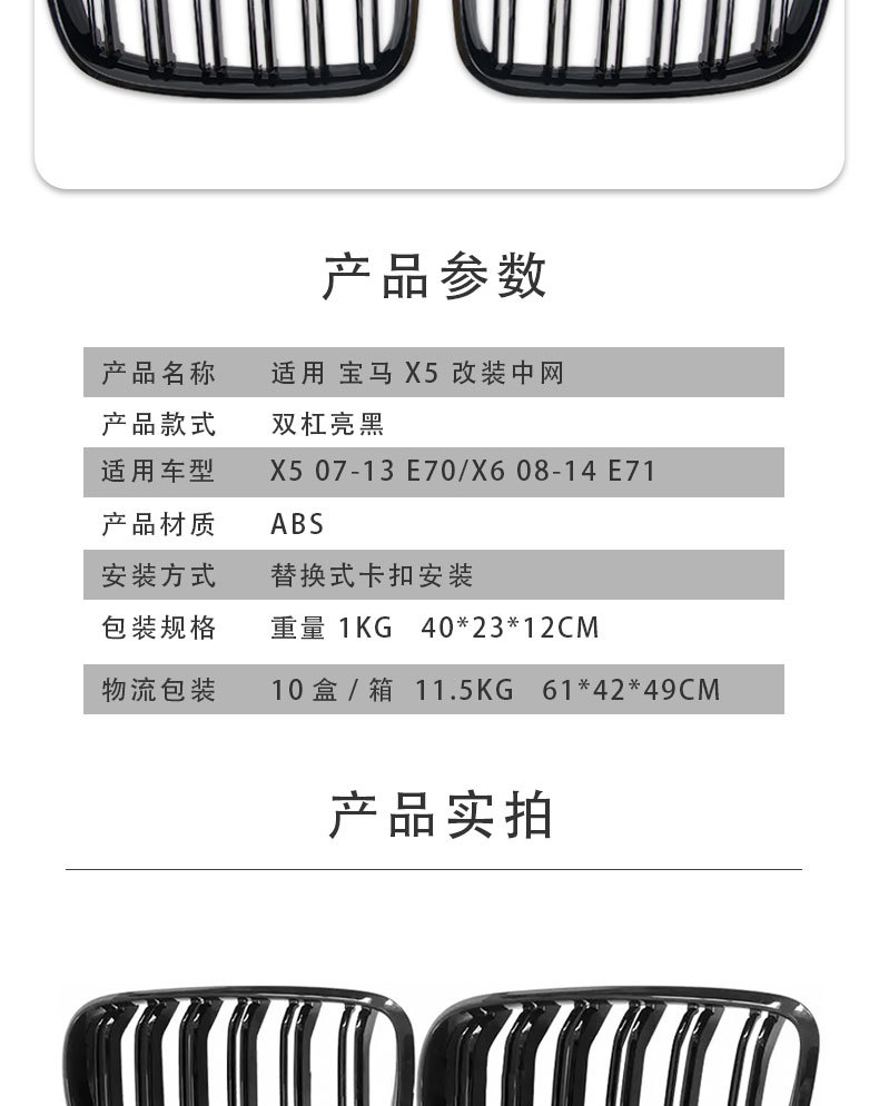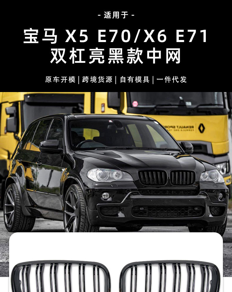Применимо для BMW X5 07-13 E70/X6 08-14 E71 Двухпроводный яркий черный сетка