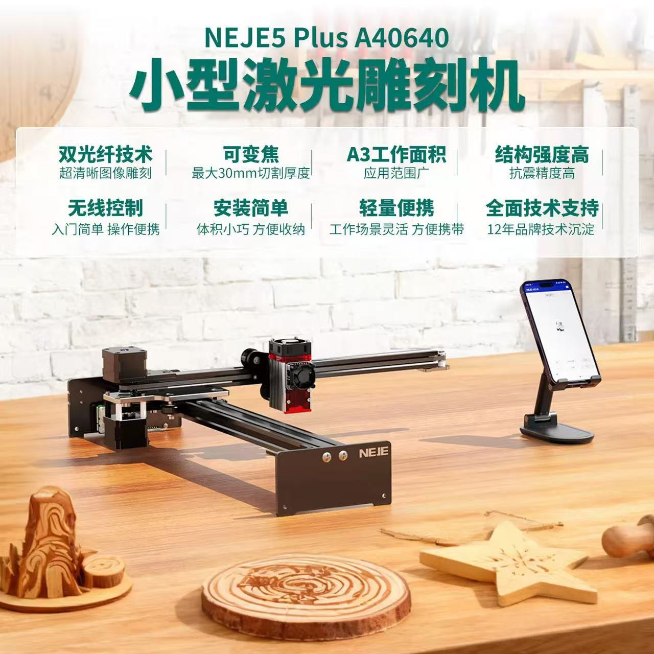 Лазерный гравировальный станок NEJE для гравировки по листьям и стеклу, компактный полностью автоматический лазерный гравировальный и кодировочный станок.