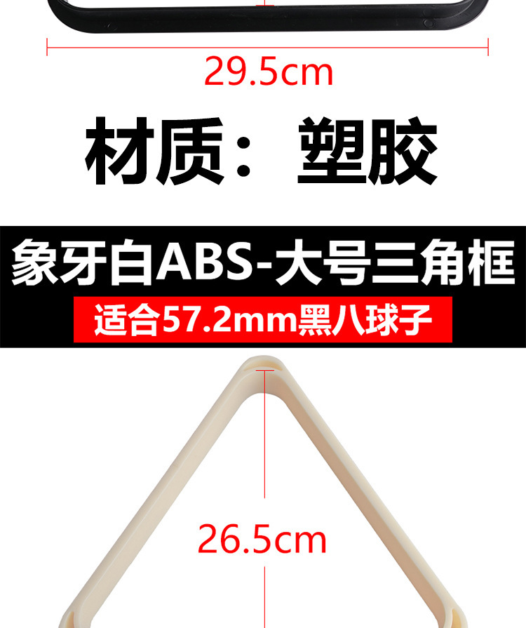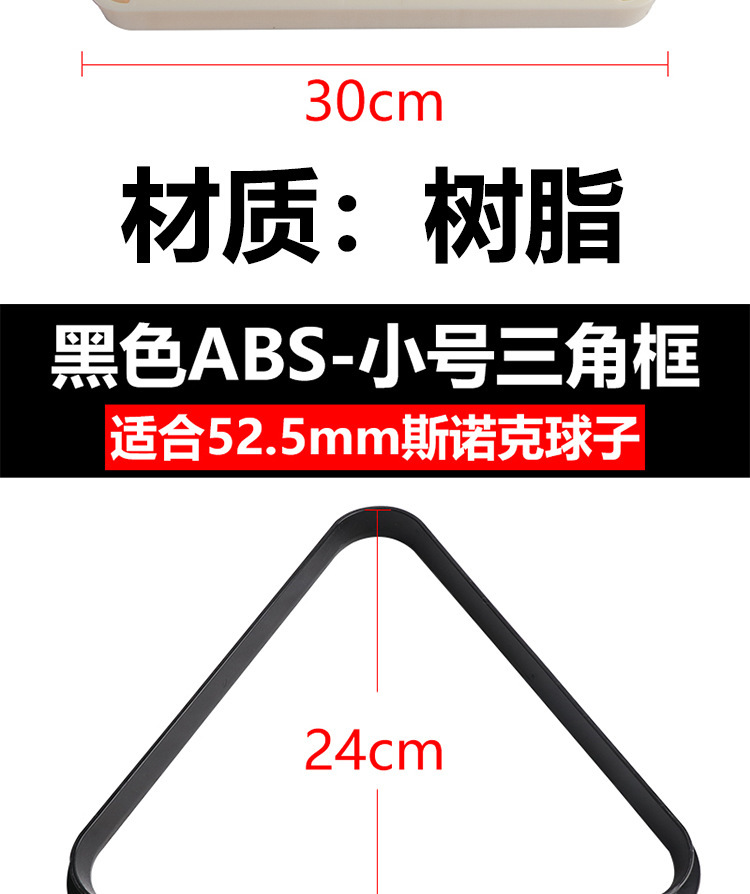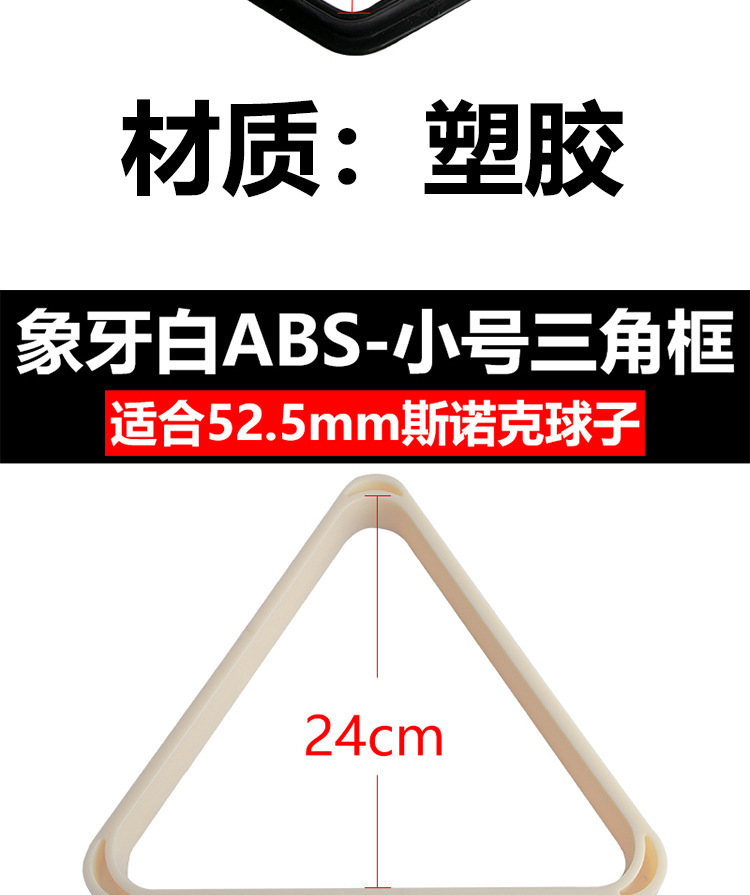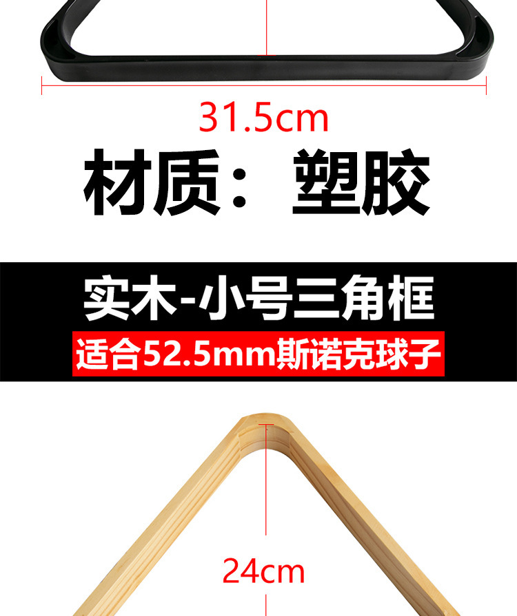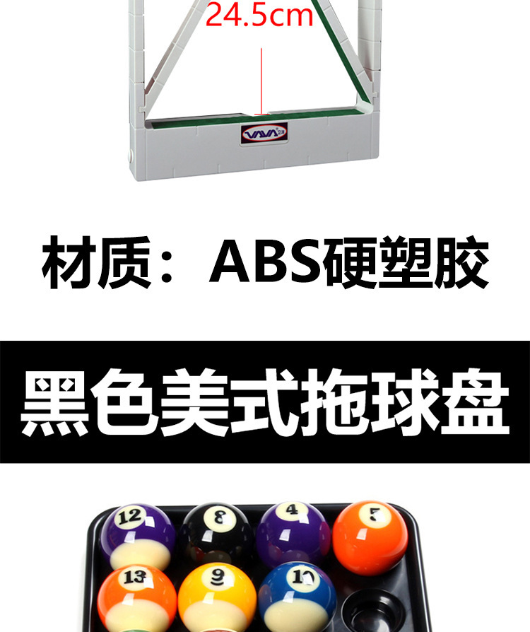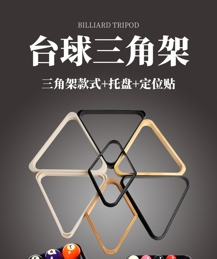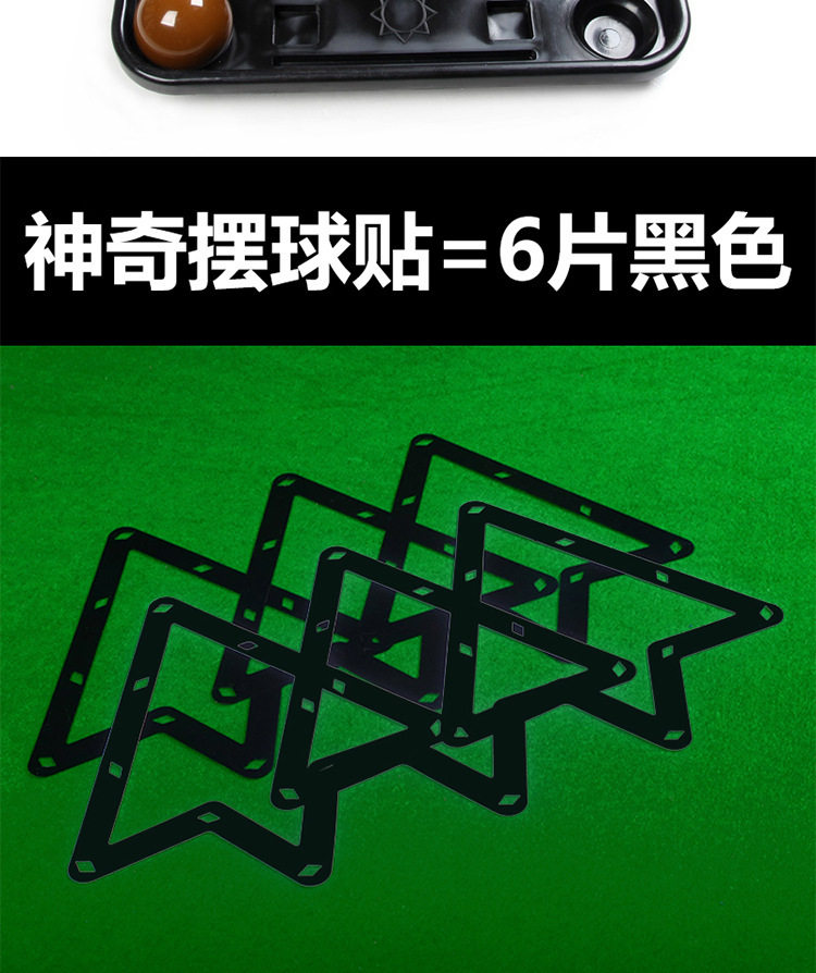 Американский массивный деревянный треугольник (57.2mm); Американский треугольник ABS (57.2mm); Американский ABS треугольник черный (57.2mm); Американский шарик черный; Снукер диск черный; Девятиугольный треугольник из массивной древесины ромба (57.2mm); Британский массивный деревянный треугольник (52.5mm); Британский ABS штатива (52.5mm); Волшебный шарик наклейки 6 штук черного костюма