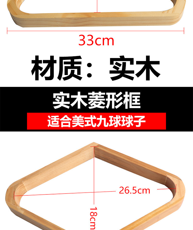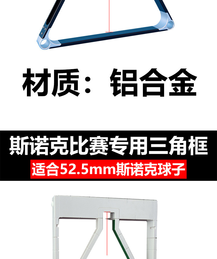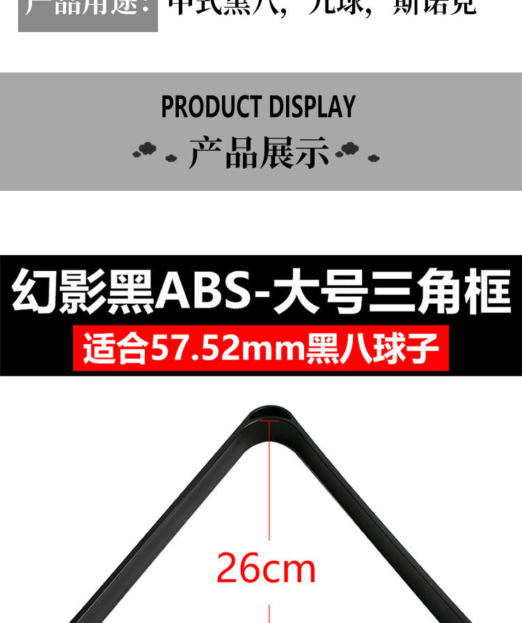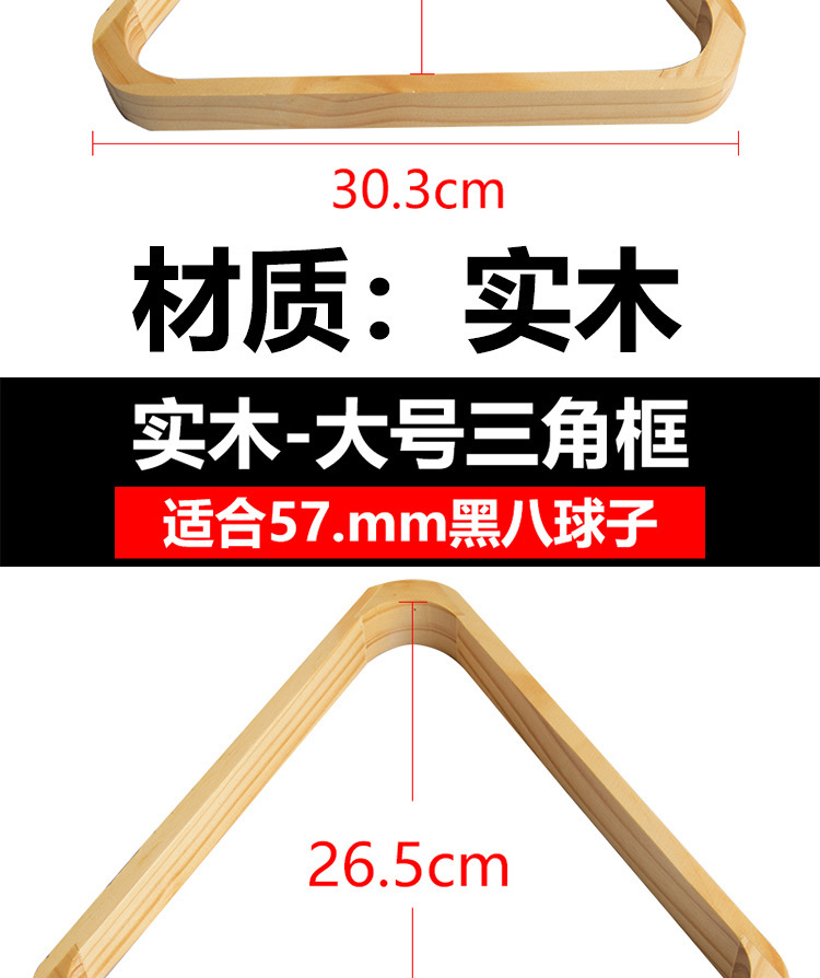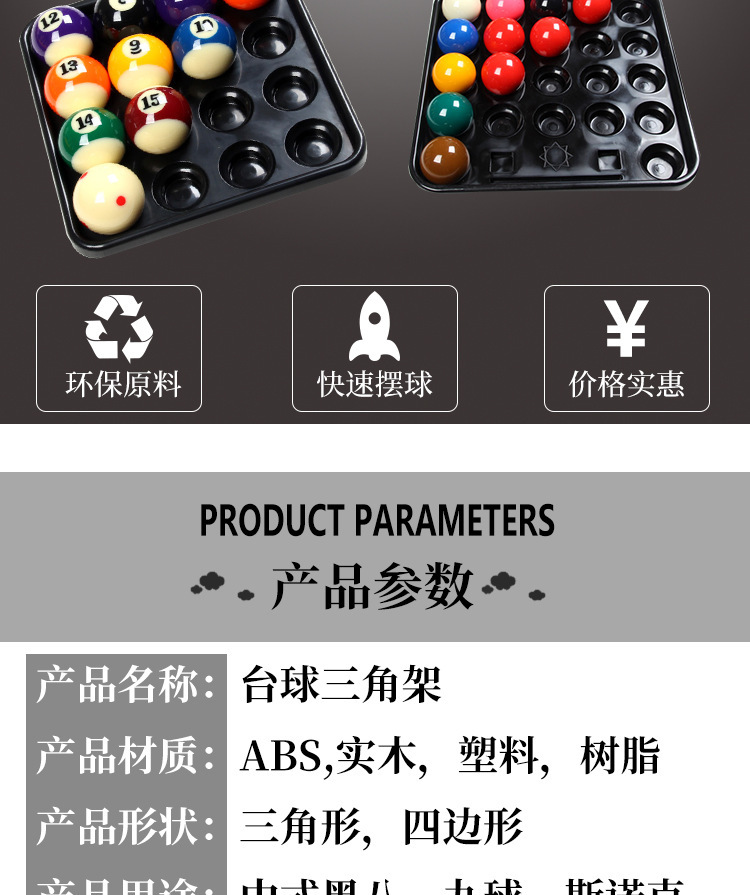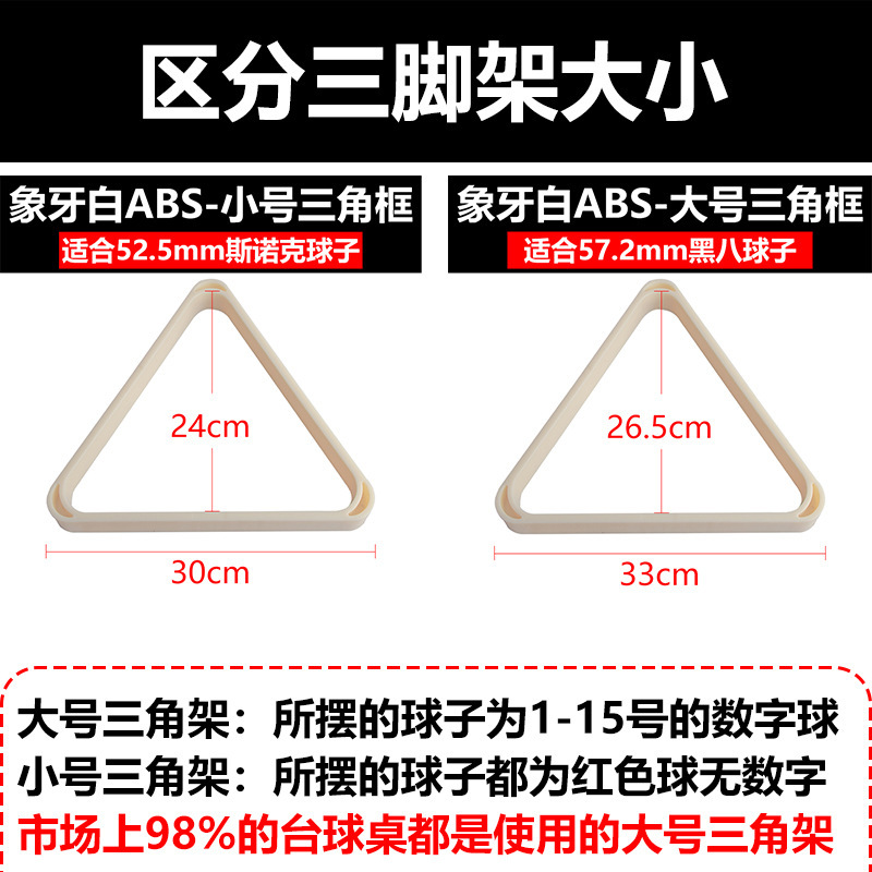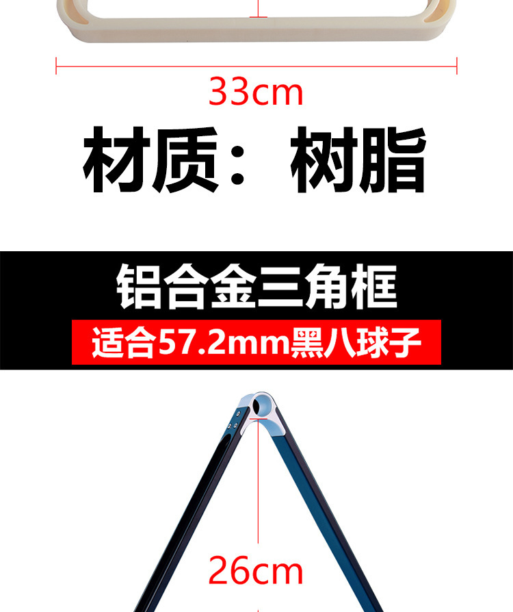 Американский массивный деревянный треугольник (57.2mm); Американский треугольник ABS (57.2mm); Американский ABS треугольник черный (57.2mm); Американский шарик черный; Снукер диск черный; Девятиугольный треугольник из массивной древесины ромба (57.2mm); Британский массивный деревянный треугольник (52.5mm); Британский ABS штатива (52.5mm); Волшебный шарик наклейки 6 штук черного костюма