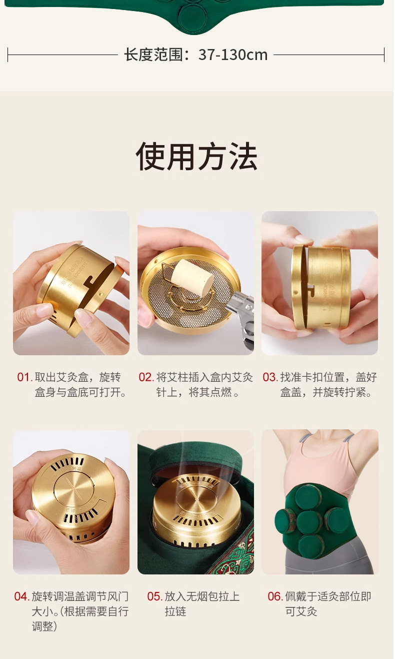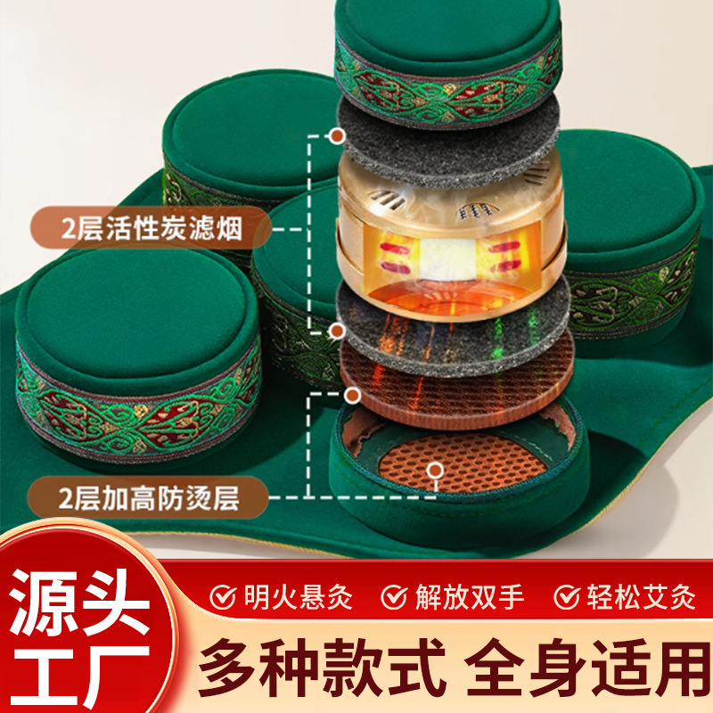Портативный домашний прибор для моксотерапии: бесшумный медный аппарат с пятью секциями и тканевым чехлом для облегчения холода и влажности, безопасен для детей.