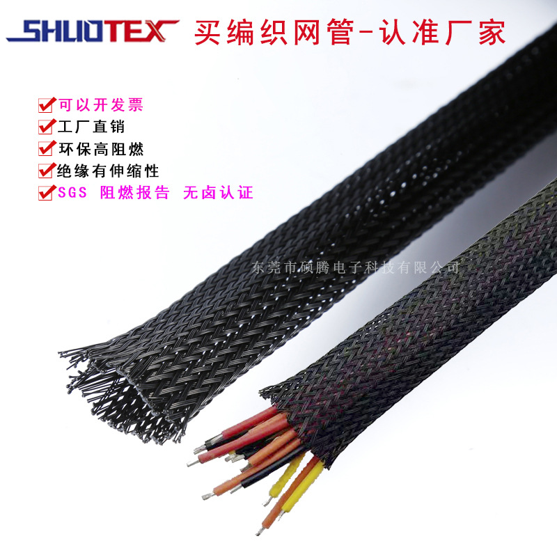Черная огнестойкая нейлоновая плетеная сетчатая трубка из змеиной кожи, защитный рукав из проволоки, телескопическая плетеная трубка из змеиной кожи