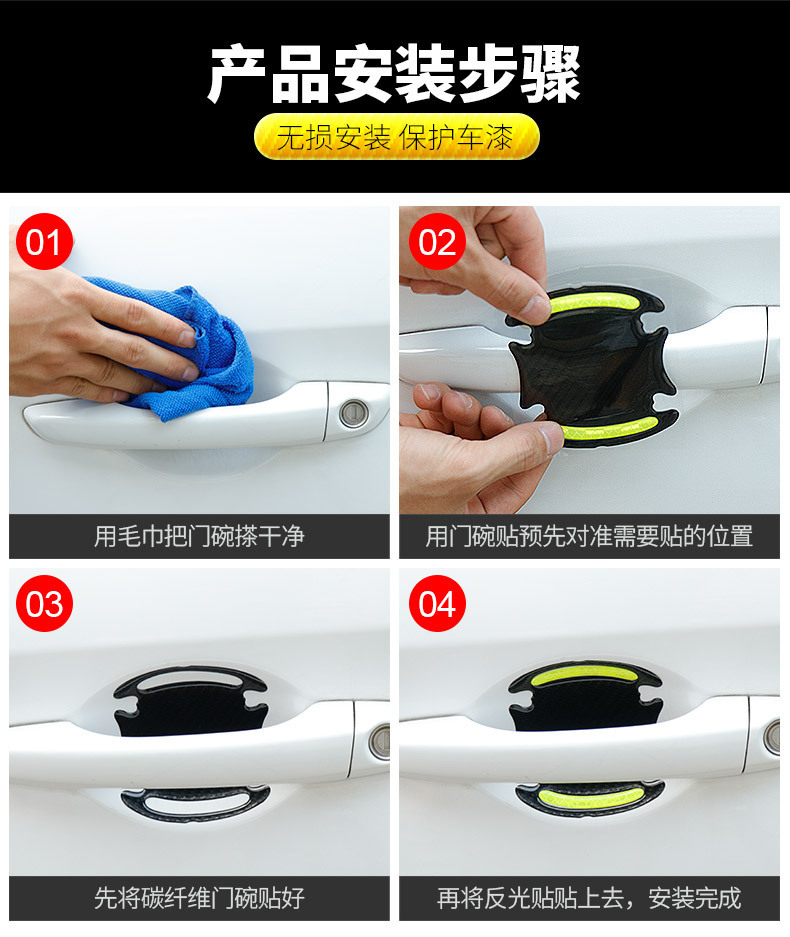 Автомобильные ручки с рисунком из углеродного волокна отражающие дверные чаши декоративные краски анти-царапины универсальные защитные наклейки для автомобильных дверных чаш