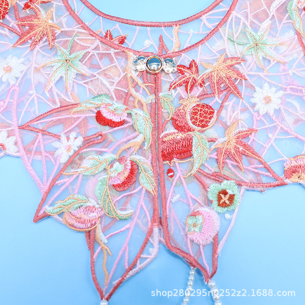 Красный кленовый лист с вышивкой облачного плеча жемчуг