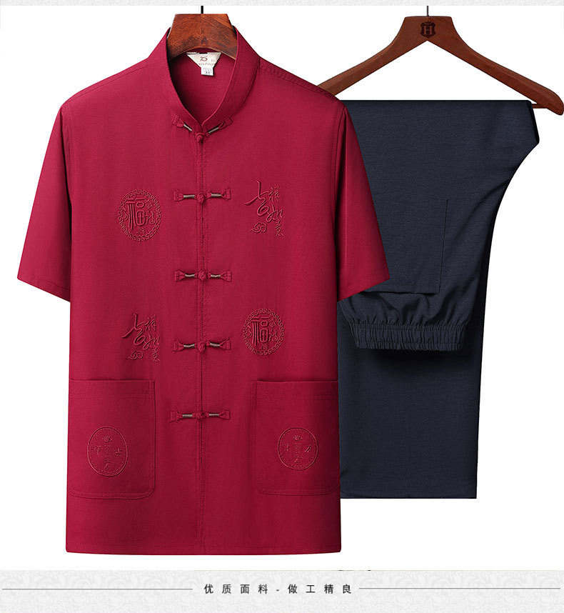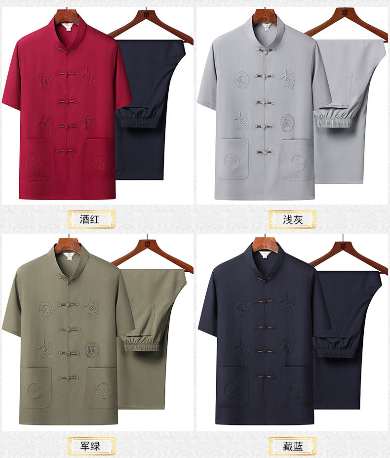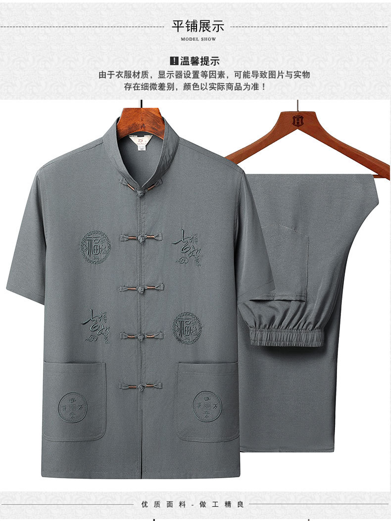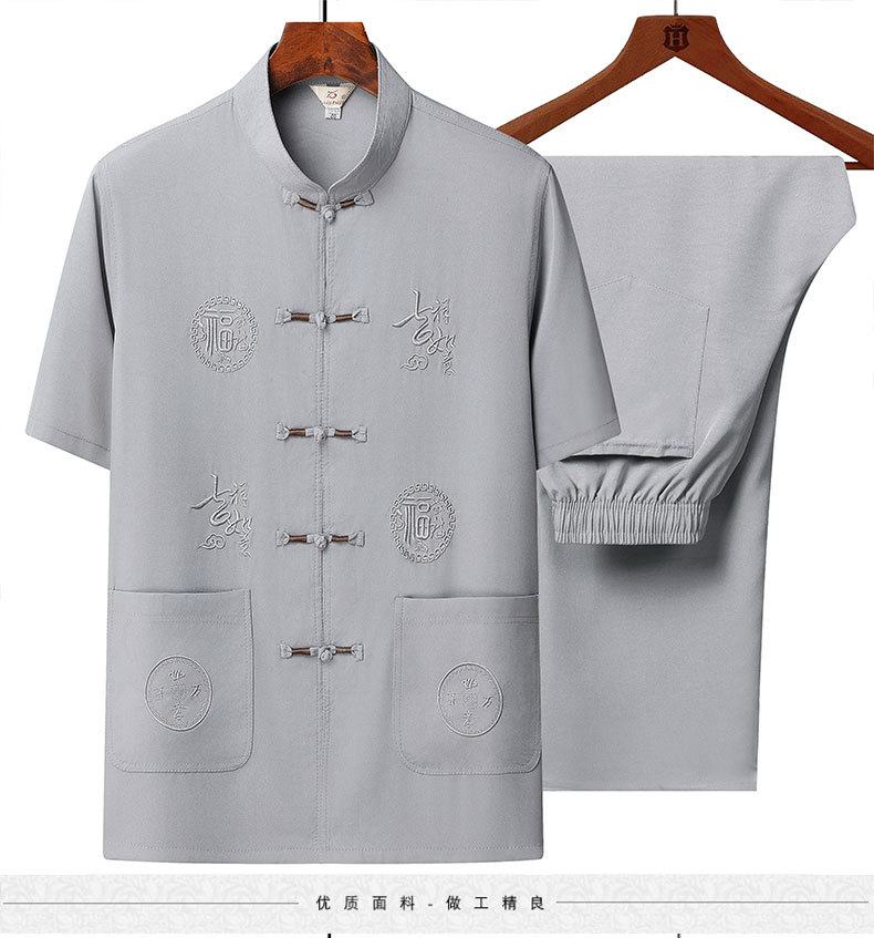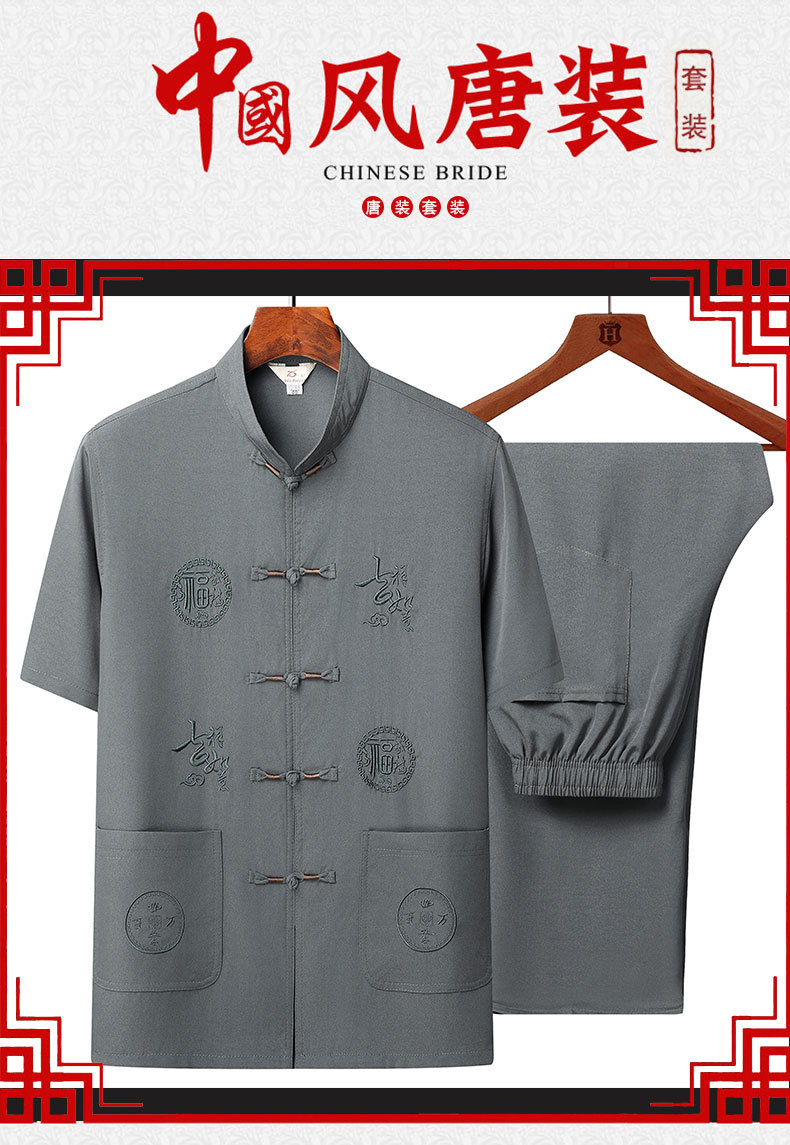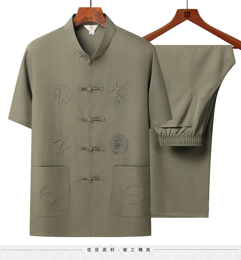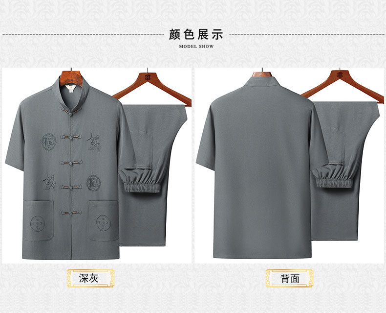 Тан костюм мужской с короткими рукавами, имитация конопли, летняя тонкая одежда среднего и пожилого возраста, повседневная мужская одежда, дедушка, дедушка, летняя одежда