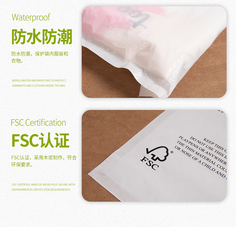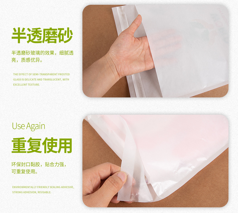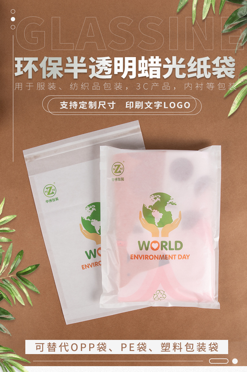 Бумажный пакет из стекловидной бумаги, пакет с застежкой-молнией, пакет для упаковки одежды без пластика, бумажный пакет с печатью из вощеной бумаги, биоразлагаемый прозрачный бумажный пакет