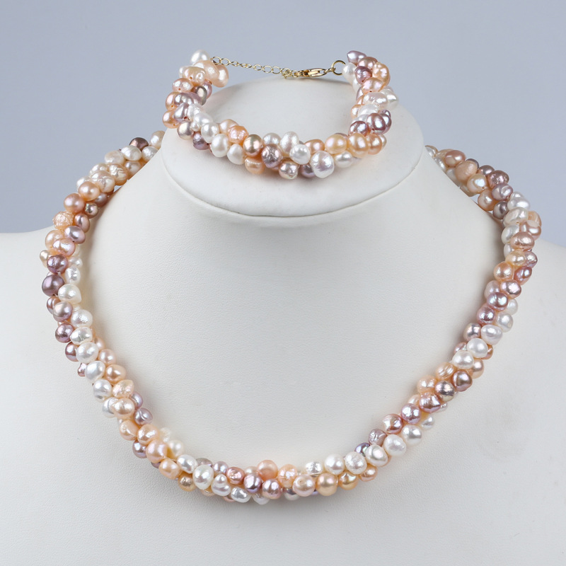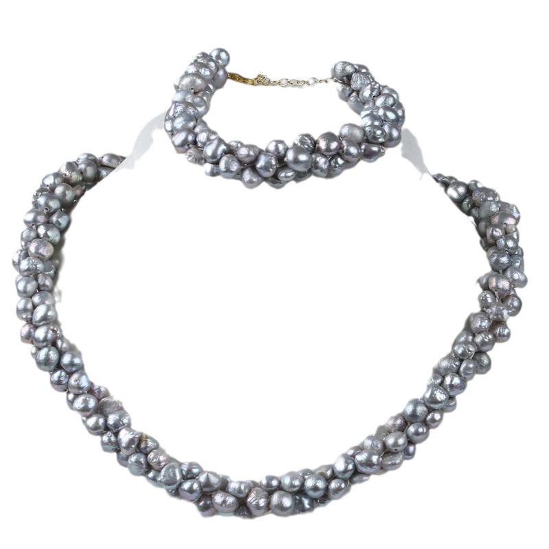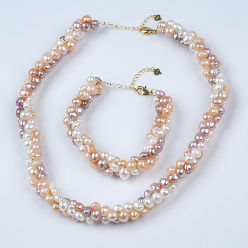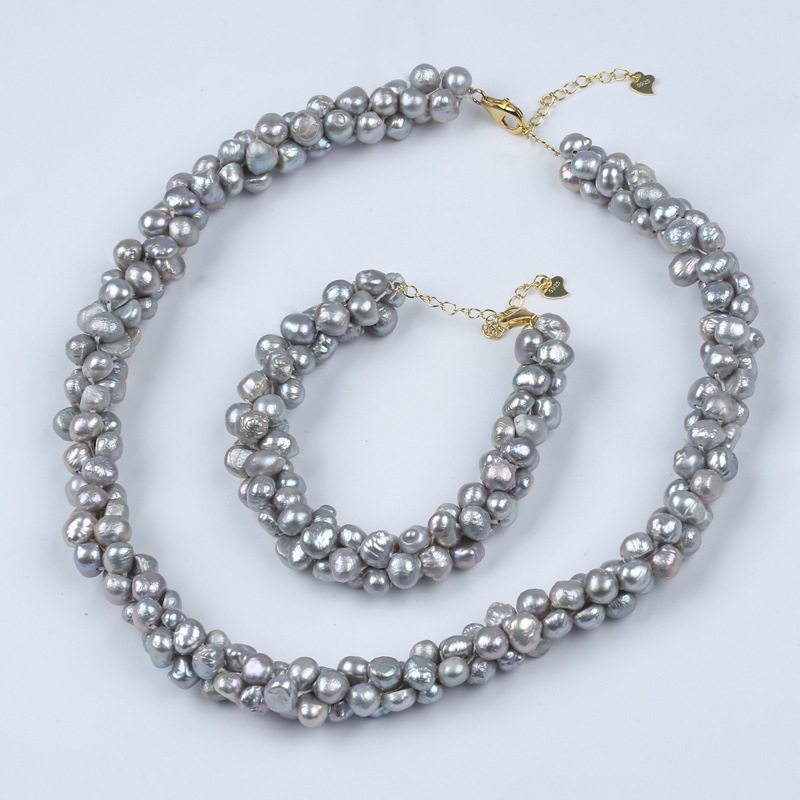 Двухсторонний жемчуг рюкзак цепочка ожерелье браслет набор пресноводных жемчужных сумок ссылка готовое ожерелье для женщин оптом