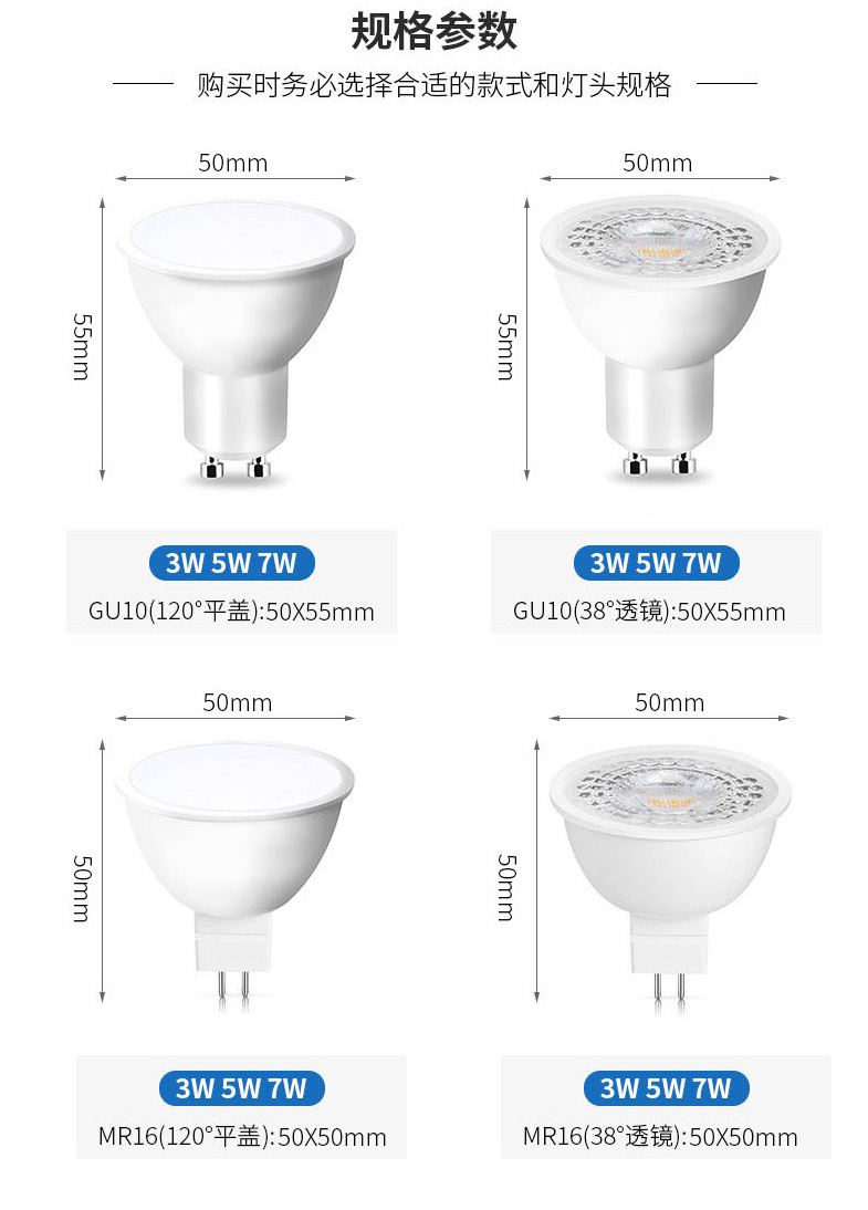 3W-120 ° плоская крышка; 5W-120 ° плоская крышка; 7W-120 ° плоская крышка; 3W-38 ° объектив; 5W-38 ° объектив; 7W-38 ° объектив