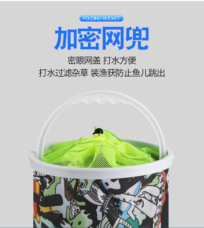 Складное ведро, чтобы поймать морское ведро мелкой рыбы, утолщенный ремень анти-прыжок сетчатая веревка 2-13L ведро для рыбы, открытый холст, ведро