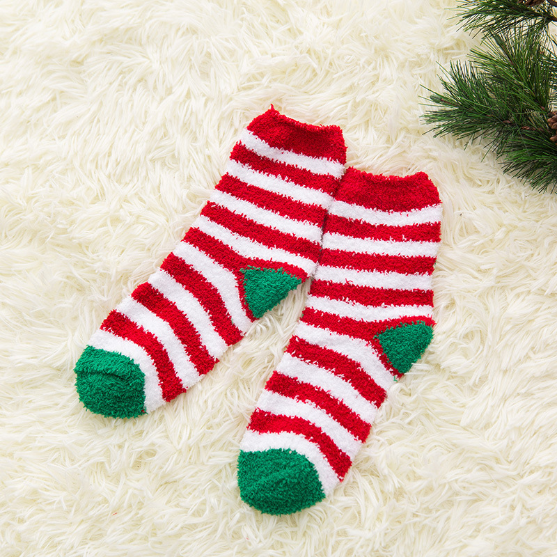 Зимние носки из кораллового флиса, рождественские носки, женские домашние теплые носки с Санта-Клаусом, носки для сна с мультяшными оленями